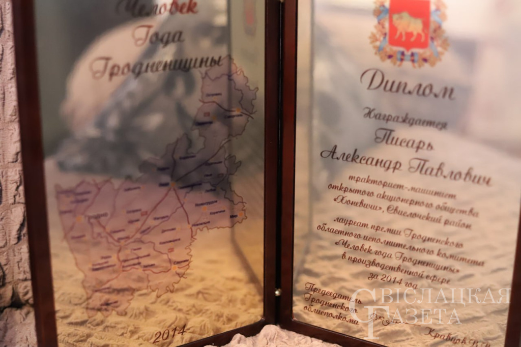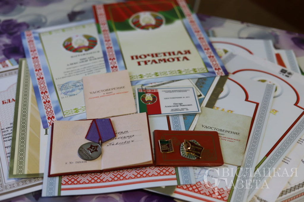 В 1986 году Александр Павлович был награжден медалью «За трудовую доблесть». В копилке его трудовых наград – знак «Ударник коммунистического труда», «Победитель социалистического соревнования», «Ударник ХІІ пятилетки». Александр Писарь пять раз был занесен на районную Доску почета, дважды избирался депутатом районного Совета, был занесен в книгу «Лучшие люди» по Гродненской области. Был участником первого Всебелорусского народного собрания, удостоен премии «Человек года Гродненщины». За ударный труд Александр Писарь получал почетные грамоты, благодарственные письма, дипломы за участие в конкурсах пахарей. Этих наград как районного, так областного и республиканского уровней собралось около пятидесяти. Все они бережно хранятся, потому что за каждой грамотой – труд. Труд от зари до зари, труд до седьмого пота.