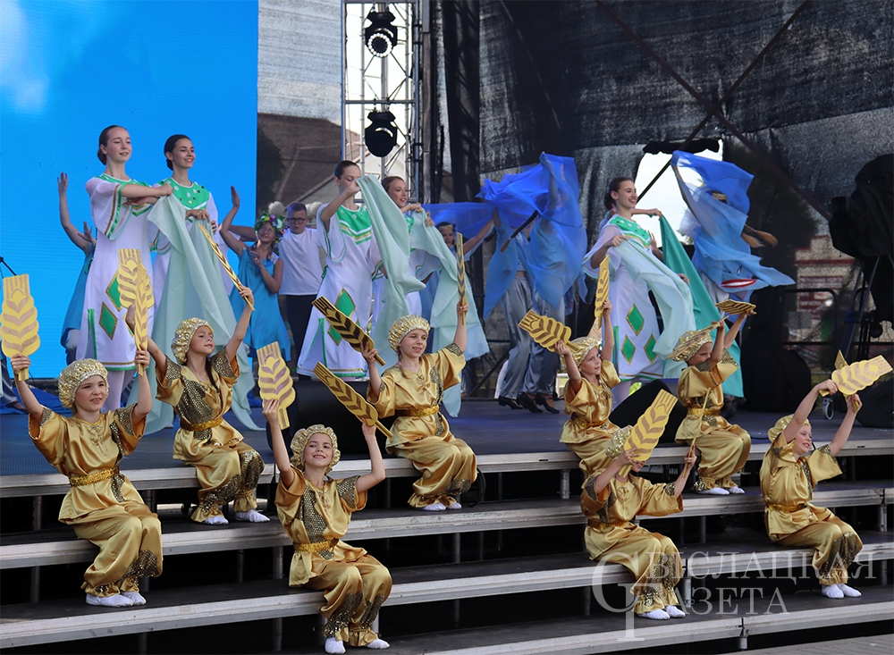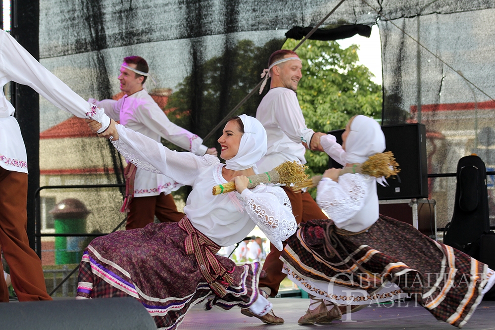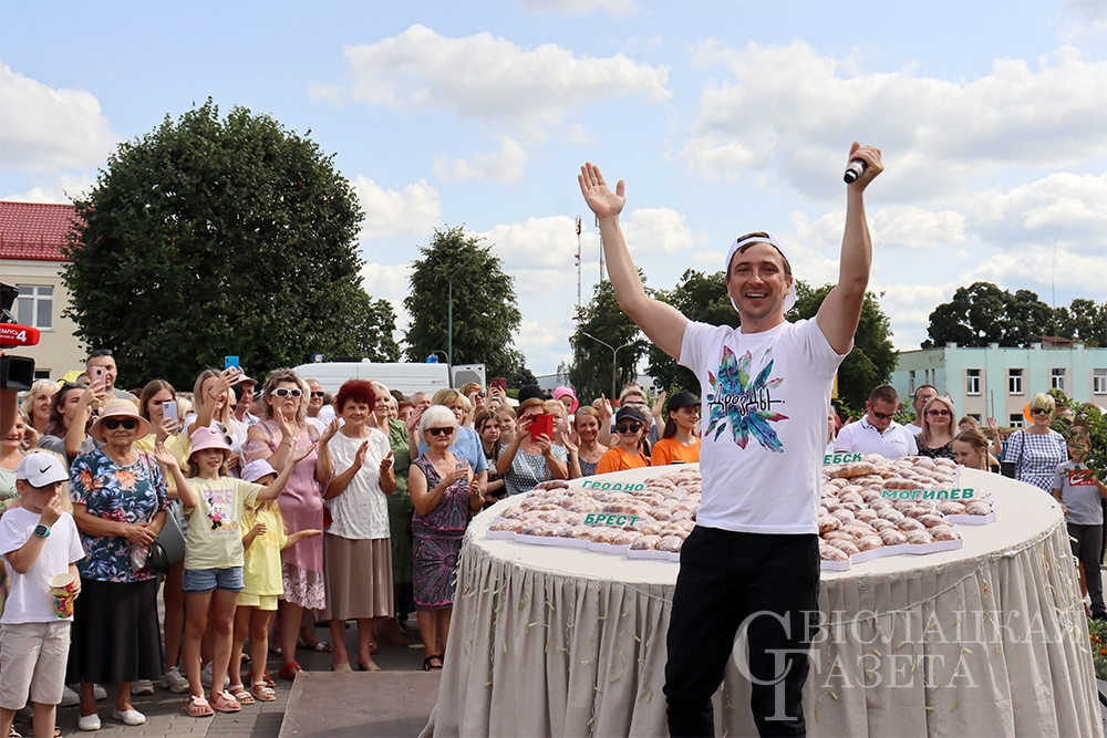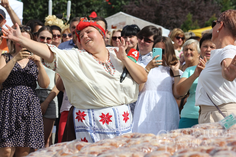 У Свіслачы сёння шматлюдна, сонечна, музычна, весела і вельмі прыгожа. Усіх сабраў каравай-фэст “Бацькава булка”.