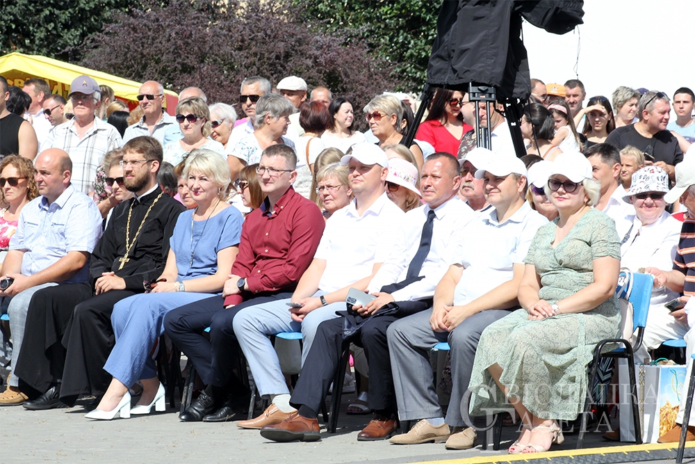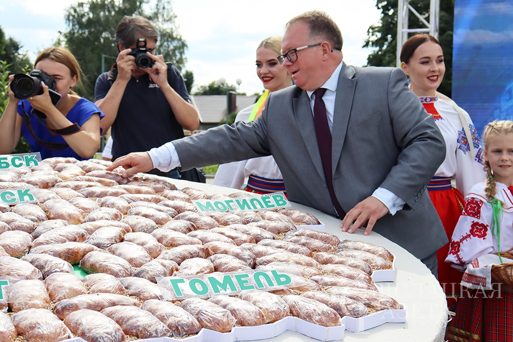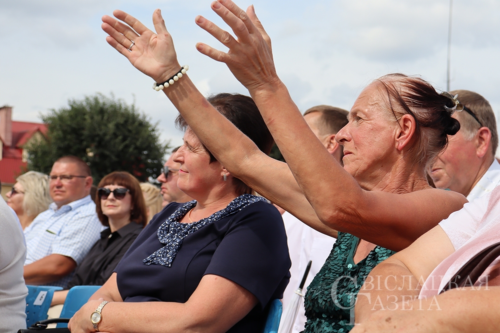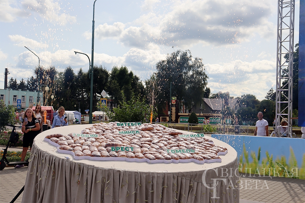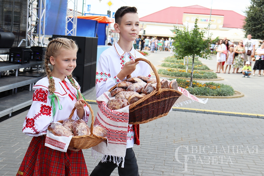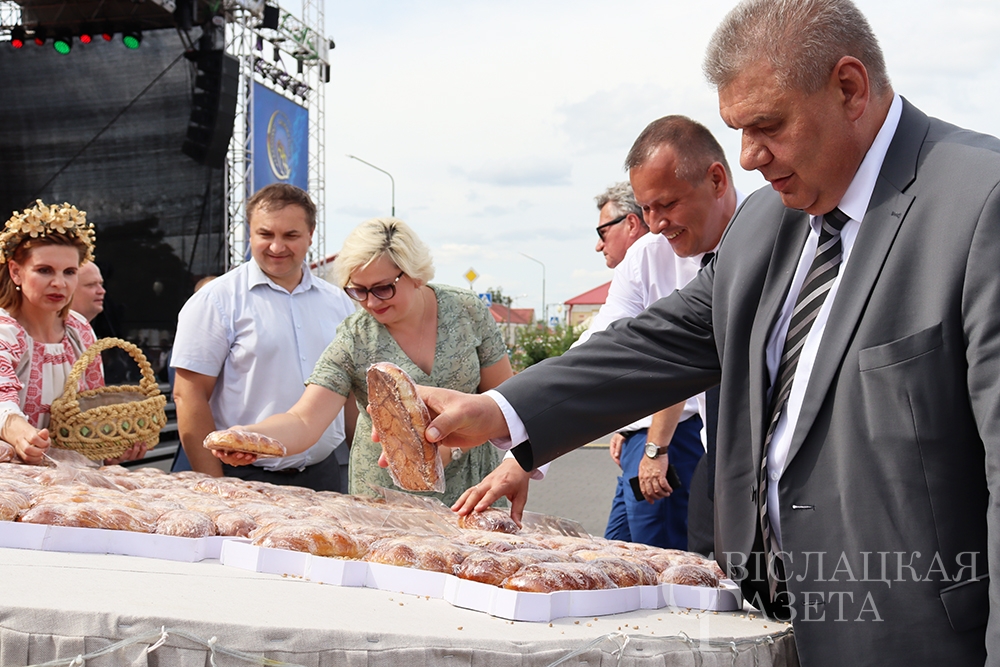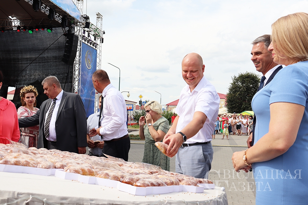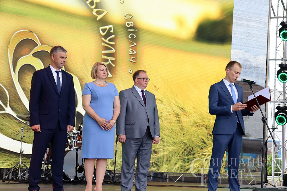 – Мы гэта свята праводзім у гонар тых гаспадынь, якія так ветліва і гасцінна сустракалі нашага Прэзідэнта на Свіслаччыне, у гонар гродзенскіх пекараў і ўсёй рэспублікі наогул. Гэта першае свята, якое прысвечана людзям гэтай прафесіі, – падкрэсліў старшыня райвыканкама Аляксандр Вярсоцкі. – Я хачу сказаць словы падзякі рупліўцам хлебных ніў і палеткаў, якія, нягледзячы на спёку, робяць сваю справу, садзейнічаючы першым крокам “бацькавай булкі”, якая прыходзіць на стол кожнага з нас. “Бацькава булка” – гэта не проста свята, не проста брэнд. Гэта збіральны вобраз той стваральнай працы, якая ладзіцца на тэрыторыі Рэспублікі Беларусь.