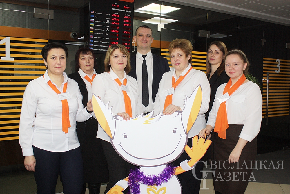 С улыбкой на лице вас всегда встретят специалисты по обслуживанию частных клиентов Наталья Сухоцкая, Светлана Сахарчук, Виолетта Яроцкая. Каждому клиенту они помогут совершить валютно-обменные операции и по приему платежей в бюджет, оплатить коммунальные услуги, открыть срочные банковские депозиты на различные сроки в белорусских рублях и иностранной валюте, оформить страховку физического лица, примут выручку от клиента или страховой взнос и многое другое. Этих милых женщин вы всегда видите за окошком касс, придя в банк. Каждая из них много лет отдала любимому делу. Например, в своей профессии Наталья Сухоцкая вот уже 33 года!
