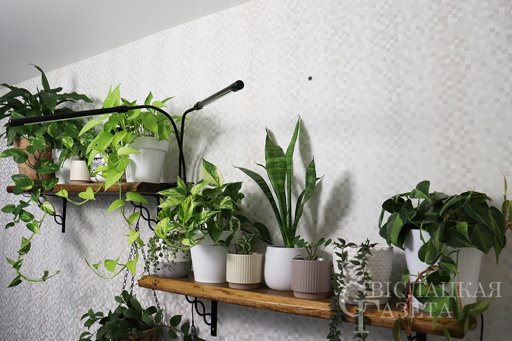 Заниматься растениями нужно с полной самоотдачей, тогда и они ответят взаимностью, считает Светлана. Для того чтобы создать красивый зеленый уголок своими руками, достаточно терпения и фантазии в дизайнерских идеях. Муж сделал полки на кухне, и у Светланы появилось дополнительное место для размещения вазонов. Казалось бы, ничего необычного, а кухня заиграла по-особенному. Так как здесь любимцам хозяйки маловато света, она позаботилась о дополнительном освещении – купила фитолампу, которая стимулирует рост растений.