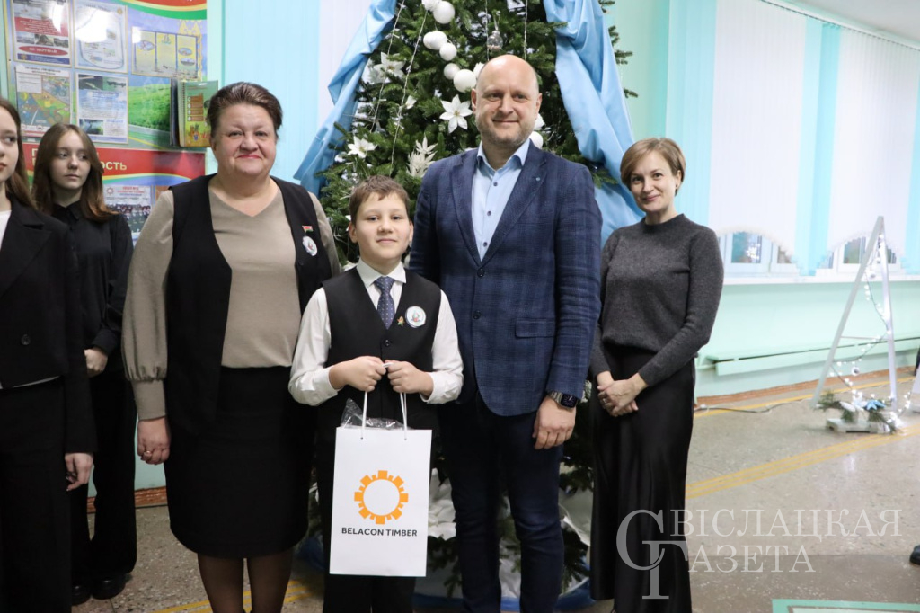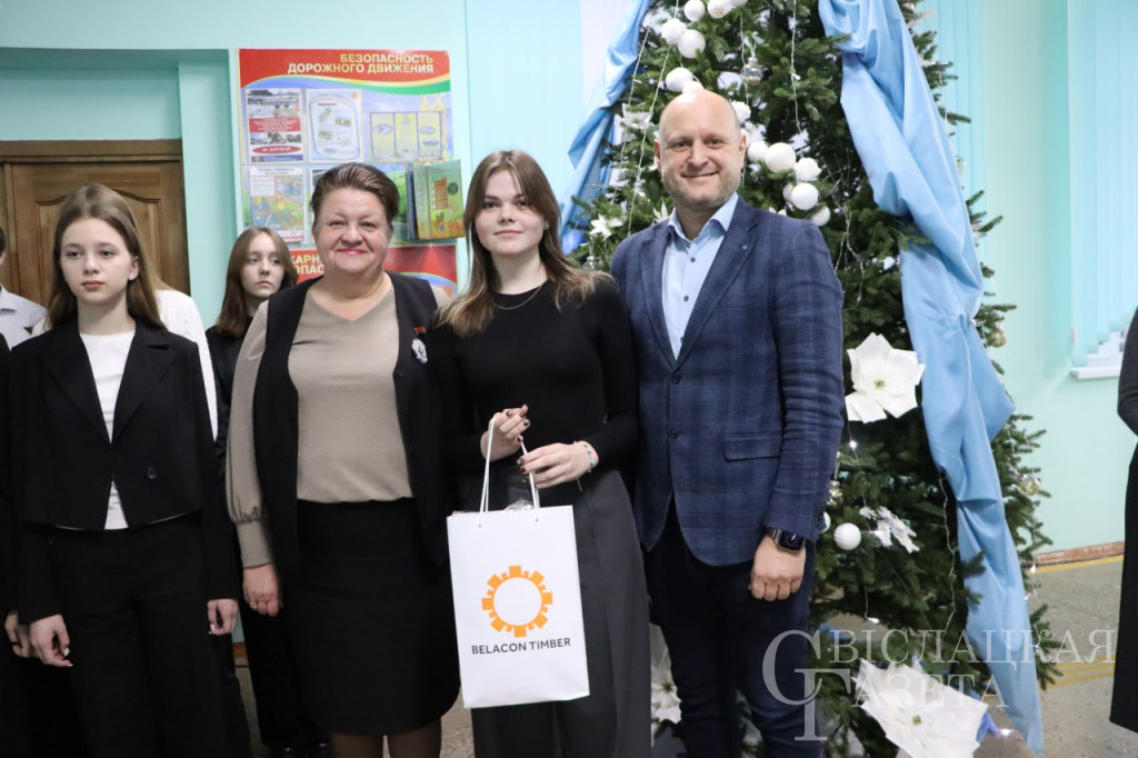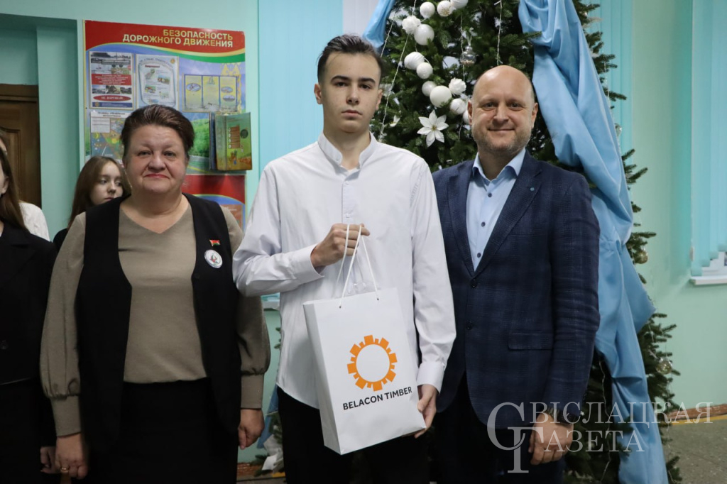 С приятной миссией представители ООО «Белакон Тимбер» уже побывали в СШ № 2 им. Н. П. Массонова и гимназии № 1 им. П. Василенко. Символично, что вручение подарков пришлось на предновогоднее время, что на локациях, выбранных для церемонии награждения, сияли красавицы-елки. Победителям аплодировали и учителя, и одноклассники. Наверняка Виктория Прокопчук, Полина Фальковская, Максим Залевский, Артур Шкулепа (СШ № 2) и гимназисты Марта Ковальчук и Матвей Карпук в тот момент почувствовали атмосферу маленького новогоднего волшебства, которое обязательно приходит с хорошими новостями и подарками. Захар Соколовский из Дворчанской БШ, Алеся Чиганаева из Гринковской БШ, Павел Савко из Хоневичской СШ! Ваши подарки к вам тоже скоро приедут!