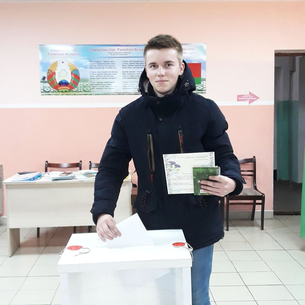 Как впервые голосующему Владиславу в этот праздничный день председатель избирательной комиссии Тамара Янцевич вручила памятный сувенир.