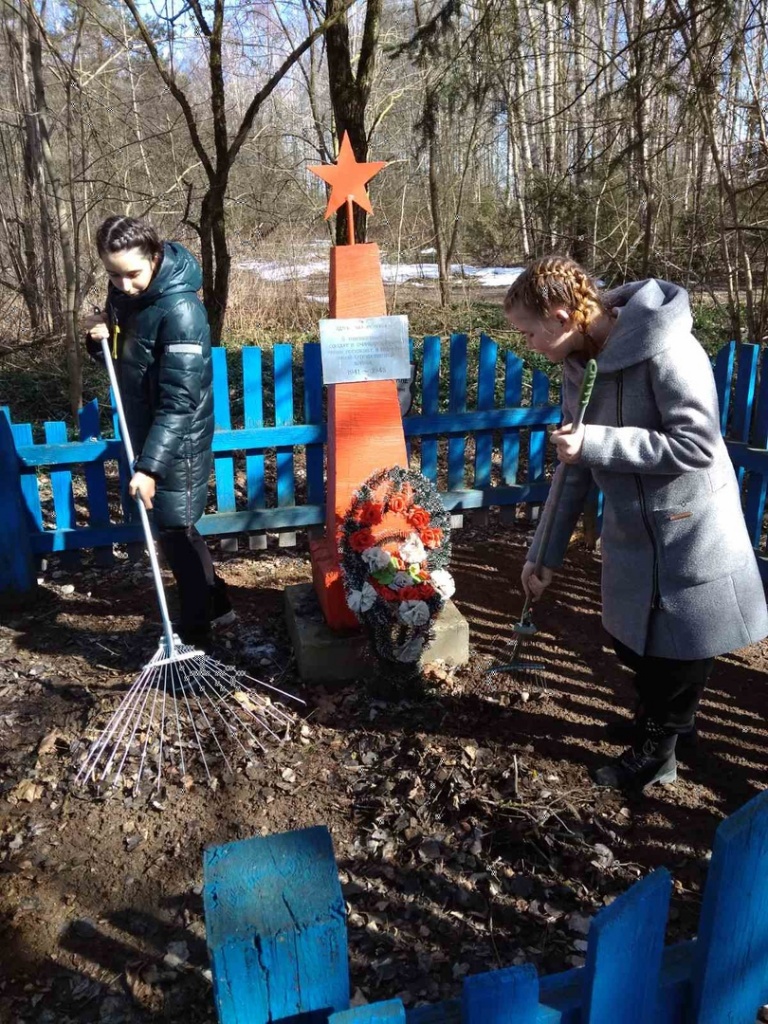 К примеру, еще в марте заменили ограждение вокруг воинского захоронения на кладбище в д. Задворяне. Пока взрослые трудились над его заменой, учащиеся Хоневичской школы, вооружившись граблями и метелками, навели порядок возле этого и других захоронений, а также обелиска.