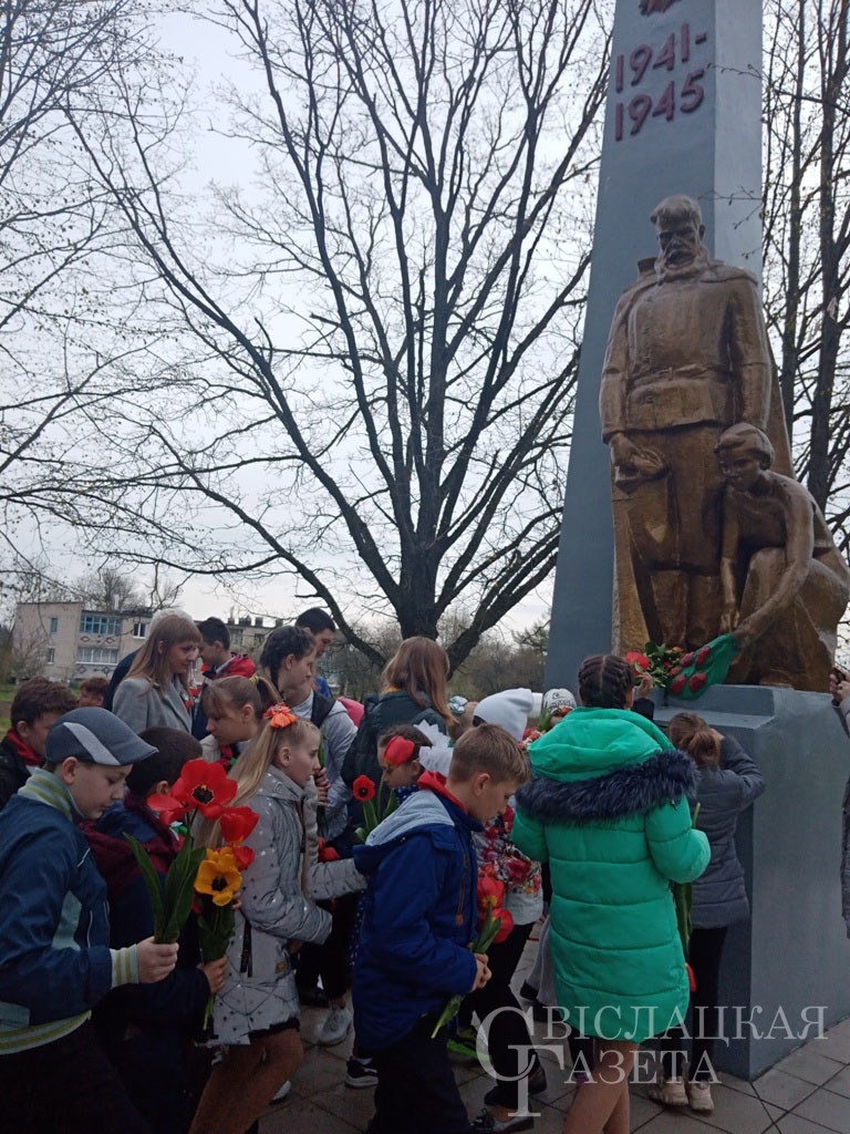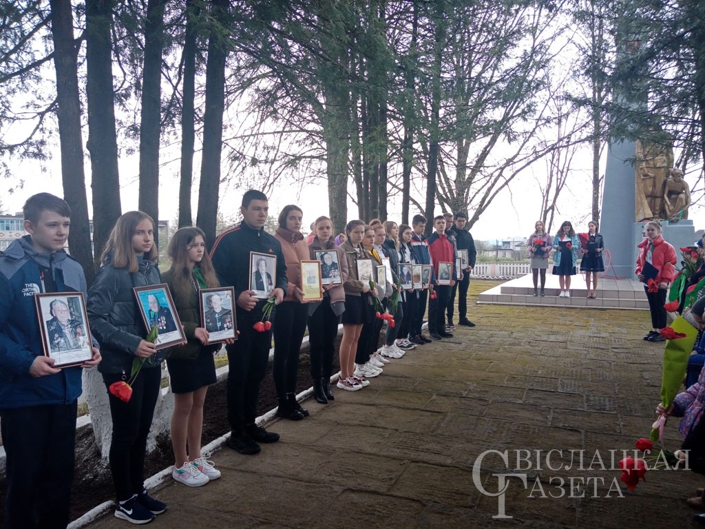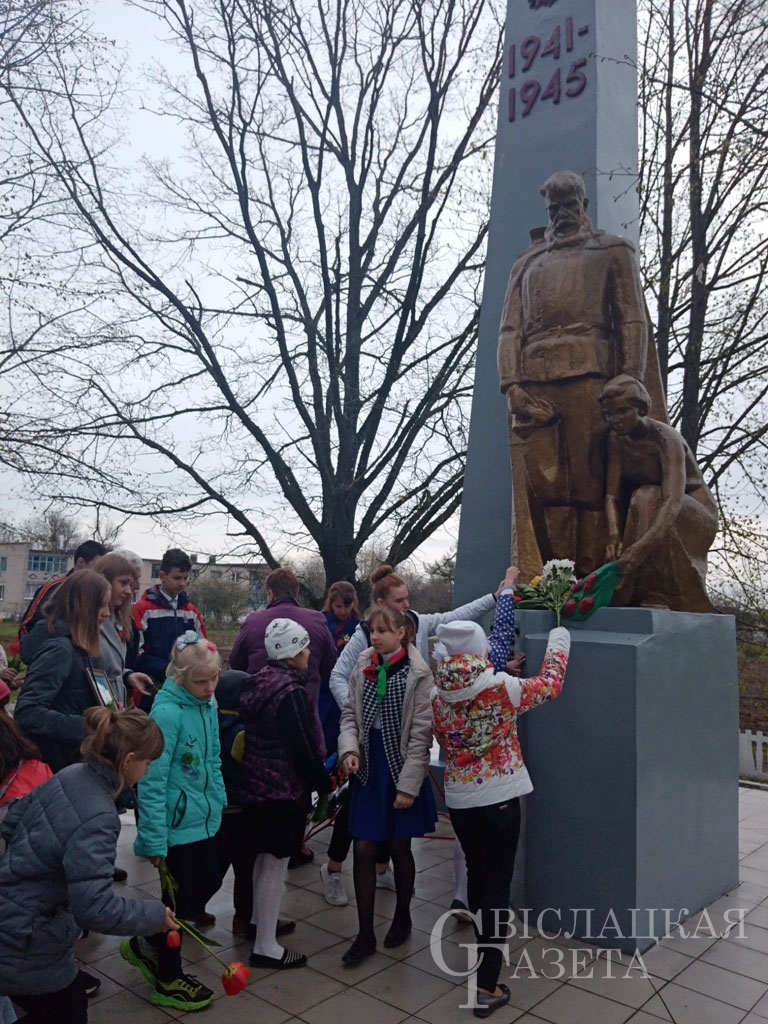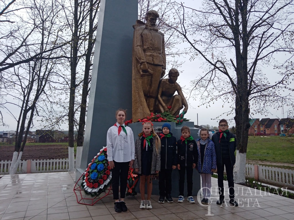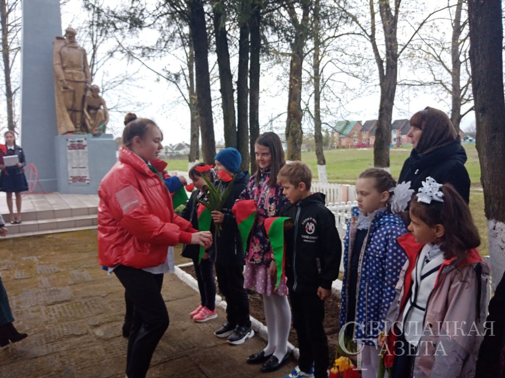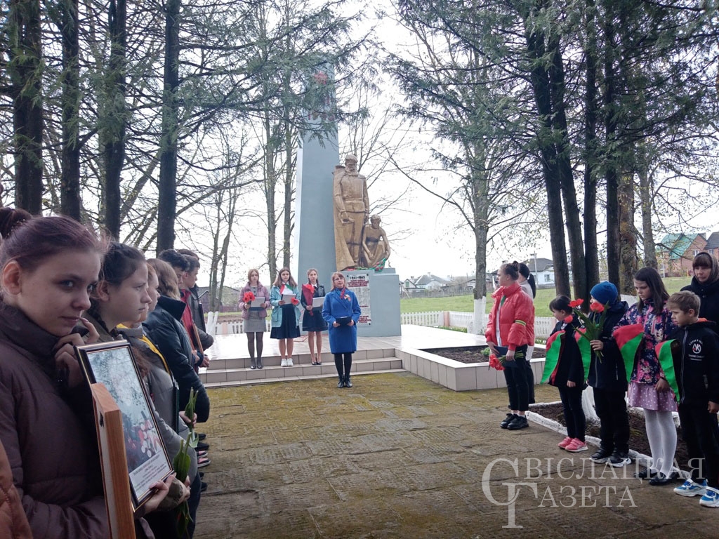 Учащиеся Вердомичской школы застыли в торжественном строю. Лица ребят серьезные, они понимают важность момента. В руках портреты ветеранов и цветы. С чувством глубокой благодарности ребята возлагают эти ярко-красные букеты к подножию памятника. Звучат стихи о подвиге, о мужестве и стойкости тех, кто ценой собственной жизни подарил нам мирные будни, трудовые и праздничные дни. В такой важный день состоялся и прием в пионеры. Ребята поклялись быть достойны памяти павших.