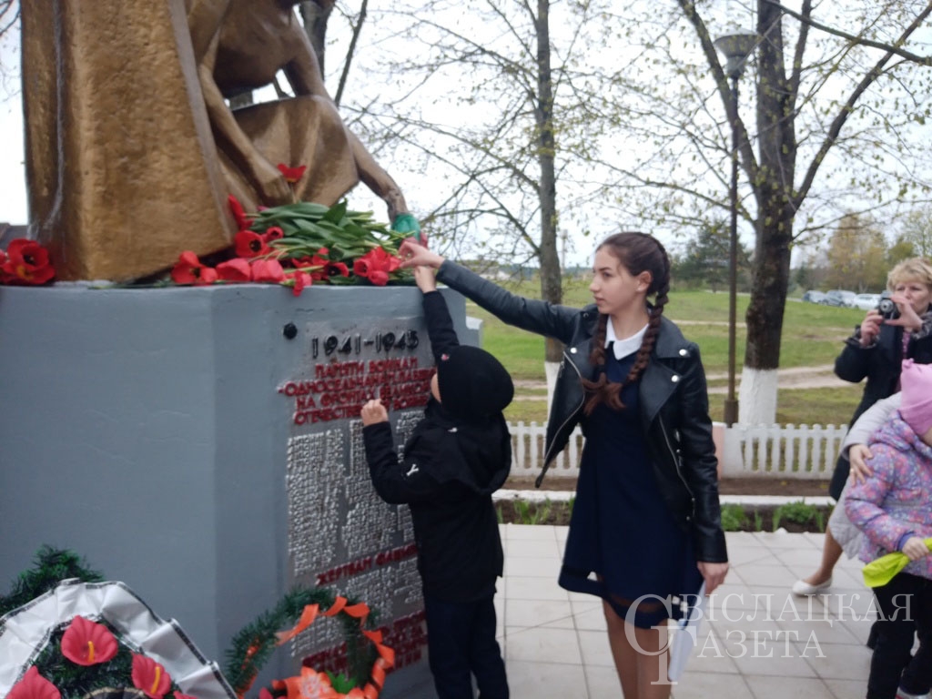 Дальше путь лежал в Великое Село. Тепло, душевно и светло прошел митинг в этом агрогородке. С Днем Победы односельчан поздравили Елена Соловей, Галина Вильгоцкая, Светлана Мартынович и гость – Ирина Гутор, активистка ОО БРСМ). Они знают, что солнце в пустые глазницы не брызнет, песни тяжелых могил не откроют, но от имени сердца, от имени жизни мы говорим: вечная слава героям!» А выступление Татьяны Гуляй у всех присутствующих вызвало слезы, простые человеческие слезы. Татьяна Ивановна поздравила всех присутствующих с Днем Победы, напомнила, что 80 лет назад началась война. И мы не имеем права забывать о том, какой ценой досталась нашему народу Победа. Это наша Победа. Ее никому не отнять. Потом женщина… запела. Ее красивый голос полетел в поднебесье, а мы стояли завороженные, и слезы катились по щекам.