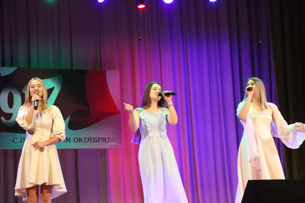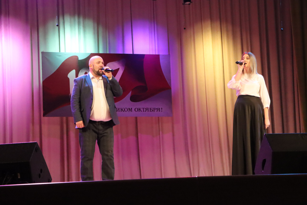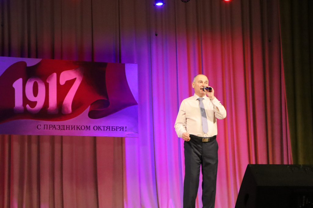 Праздничный концерт, посвященный 107-летию Октябрьской революции, прошел в районом центры культуры и народного творчества. В зале собрались представители разных коллективов, общественность.