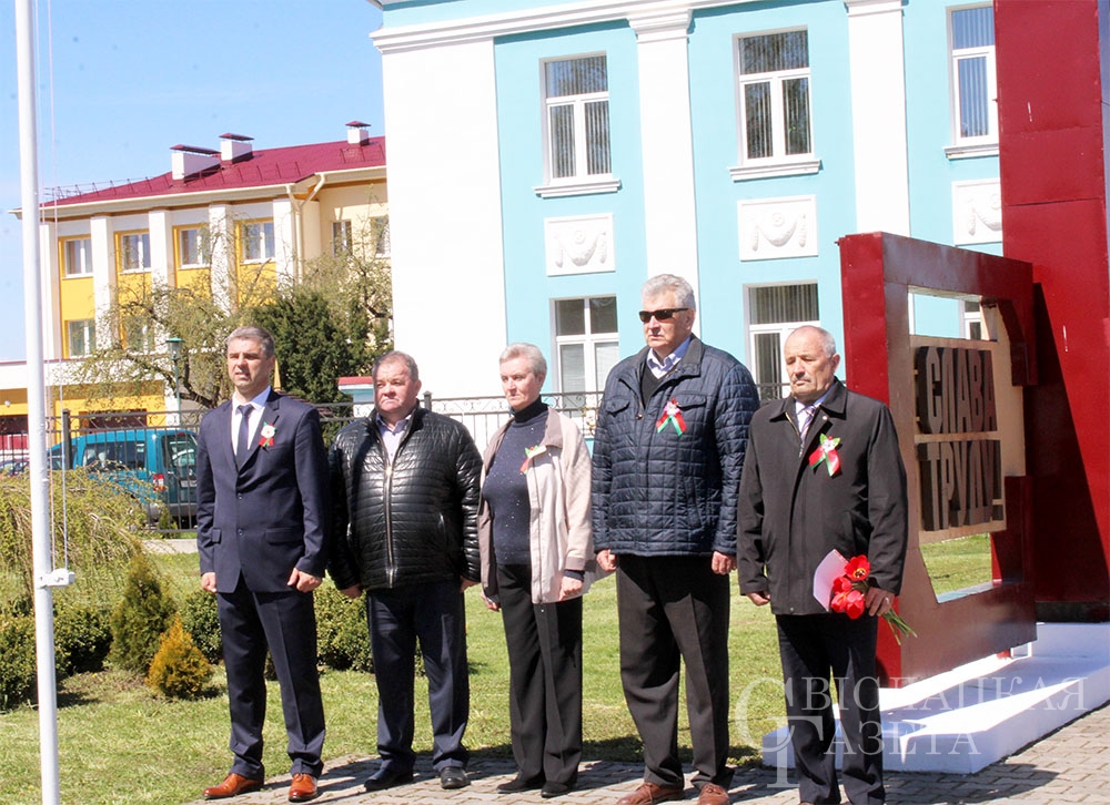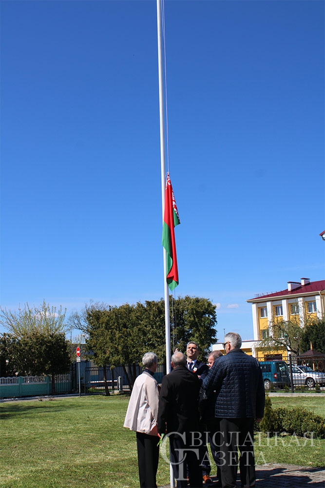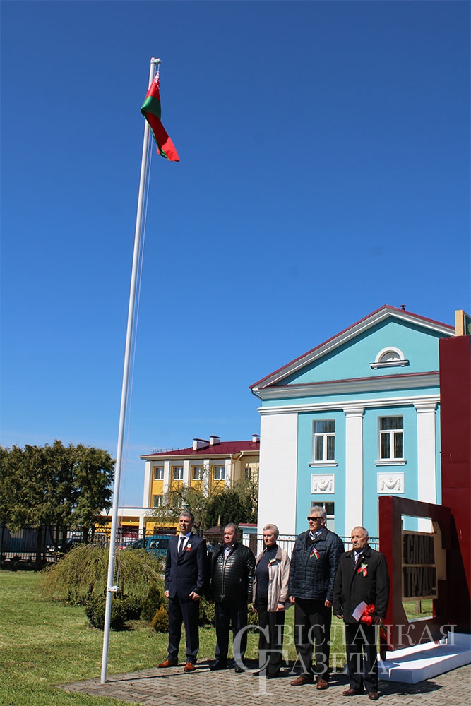 Государственные символы – герб и флаг – это важнейшие атрибуты суверенитета и независимости, это история и будущее белорусского государства, воплощение идеи национального единства. Насколько она сильна, каждый свислочанин мог прочувствовать, находясь на площади в момент поднятия Государственного флага. А такое почетное право было предоставлено председателю Свислочского районного исполнительного комитета Александру Версоцкому и руководителям организаций, занесенных на районную Доску почета, – начальнику ДРСУ-209 Виктору Кучинскому, директору Свислочского филиала Гродненского областного потребительского общества Светлане Ярмолик, главному врачу УЗ «Свислочская ЦРБ» Илье Турко, и.о. главного ветврача ГУ «Свислочская районная ветеринарная станция» Станиславу Славецкому.