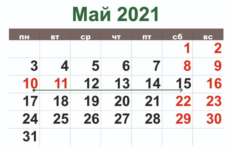 Обобщая – в мае белорусов ожидают 11 выходных (1, 2, 8, 9, 10, 11, 22, 23, 29 и 30 числа) и всего 20 рабочих дней.