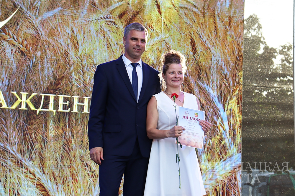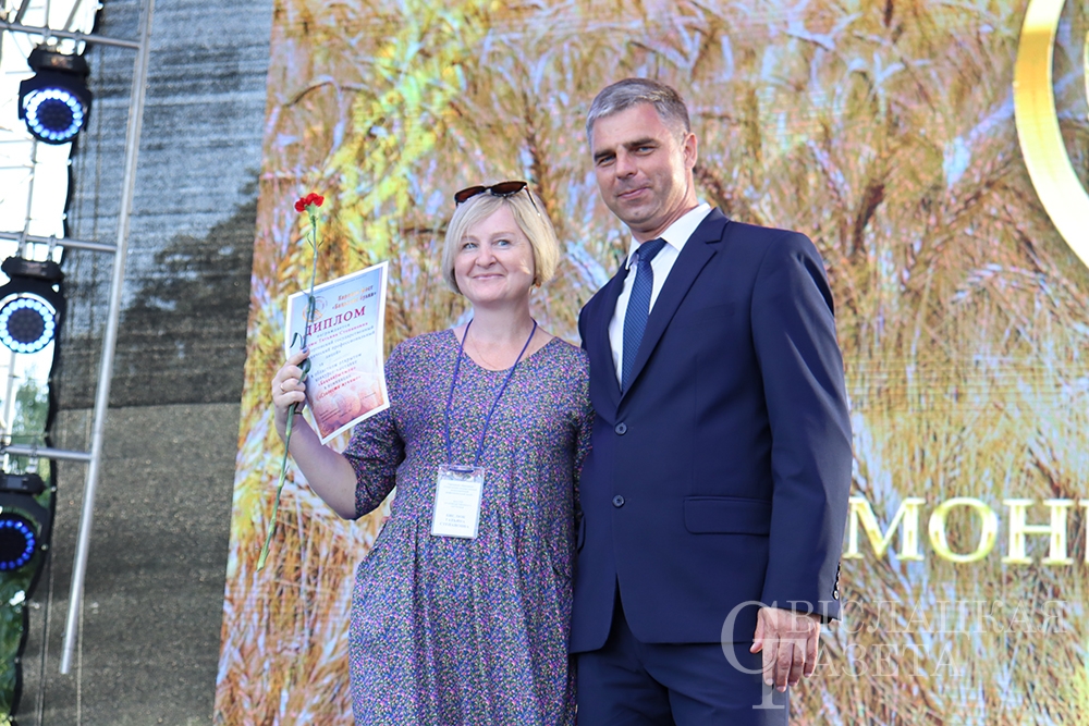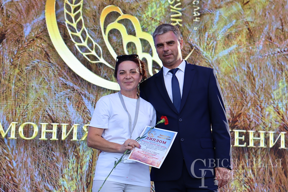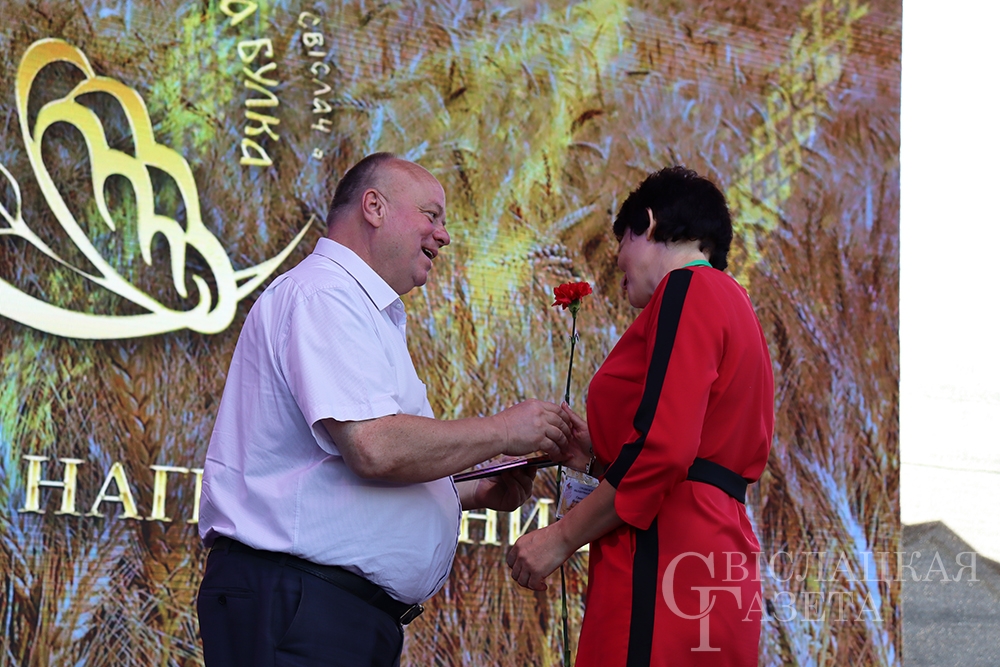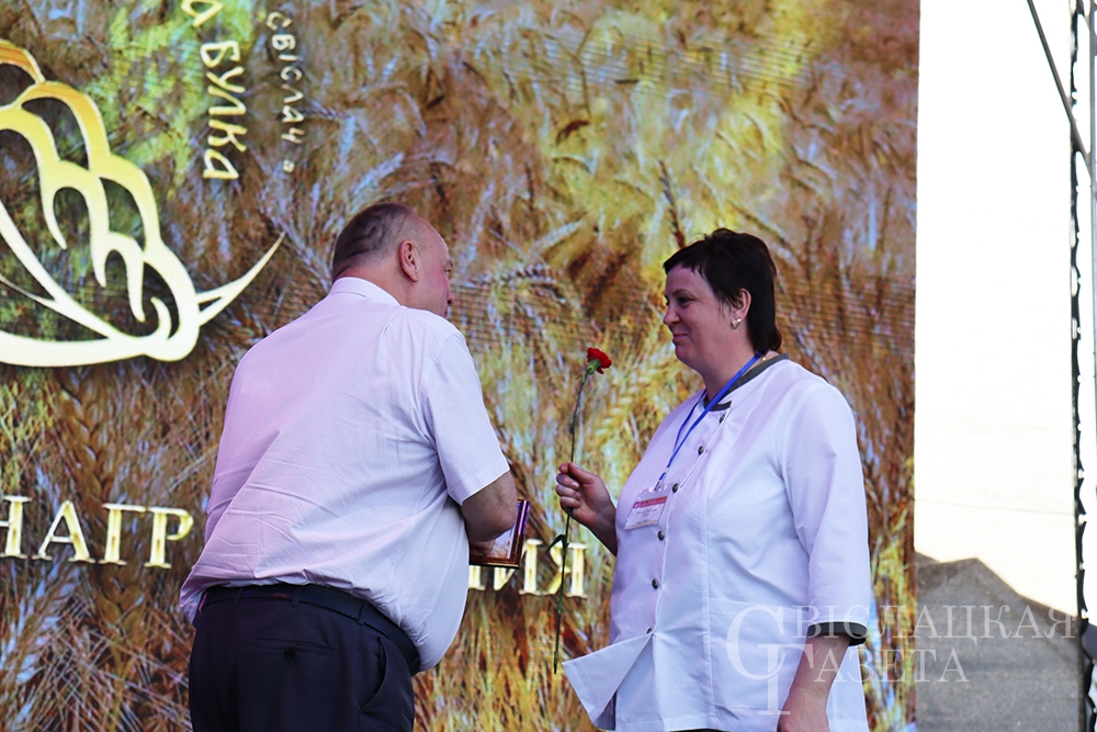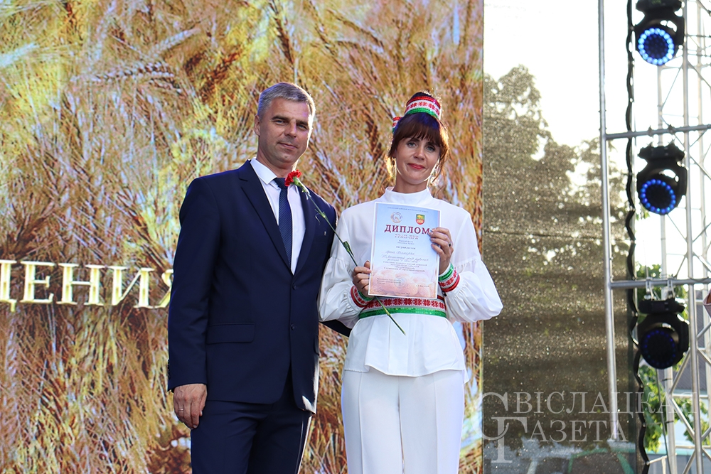 Сколько раз встречалась на празднике «Бацькава булка» созданная свислочанкой Людмилой Шворак работа, пожалуй, и не сосчитаешь. Золотистая булочка, окаймленная серпом, – везде, куда ни бросишь взгляд. И не удивительно, ведь это логотип каравай-феста, а художник-оформитель районной библиотеки – его автор. Людмила Петровна, добро пожаловать на сцену! Вам – награда! И снова не смолкали аплодисменты…