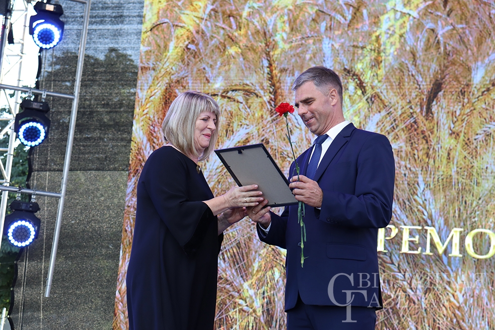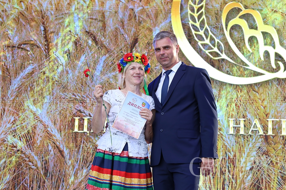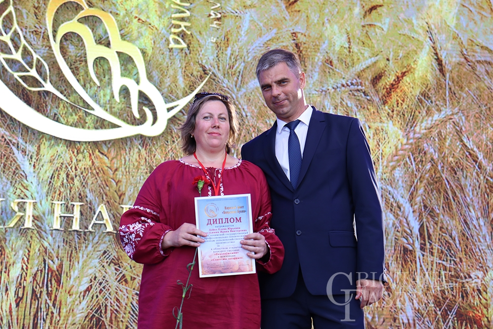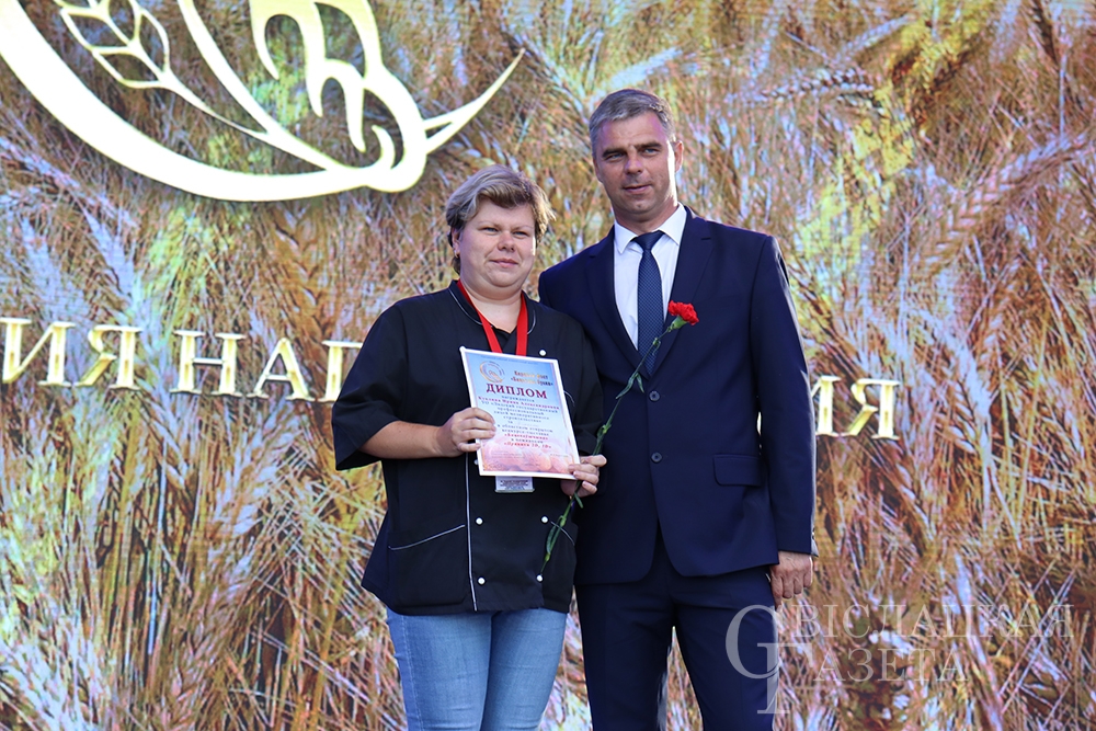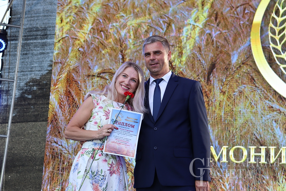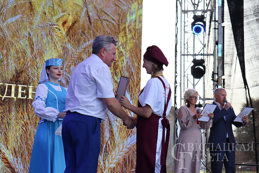 Сколько раз встречалась на празднике «Бацькава булка» созданная свислочанкой Людмилой Шворак работа, пожалуй, и не сосчитаешь. Золотистая булочка, окаймленная серпом, – везде, куда ни бросишь взгляд. И не удивительно, ведь это логотип каравай-феста, а художник-оформитель районной библиотеки – его автор. Людмила Петровна, добро пожаловать на сцену! Вам – награда! И снова не смолкали аплодисменты…