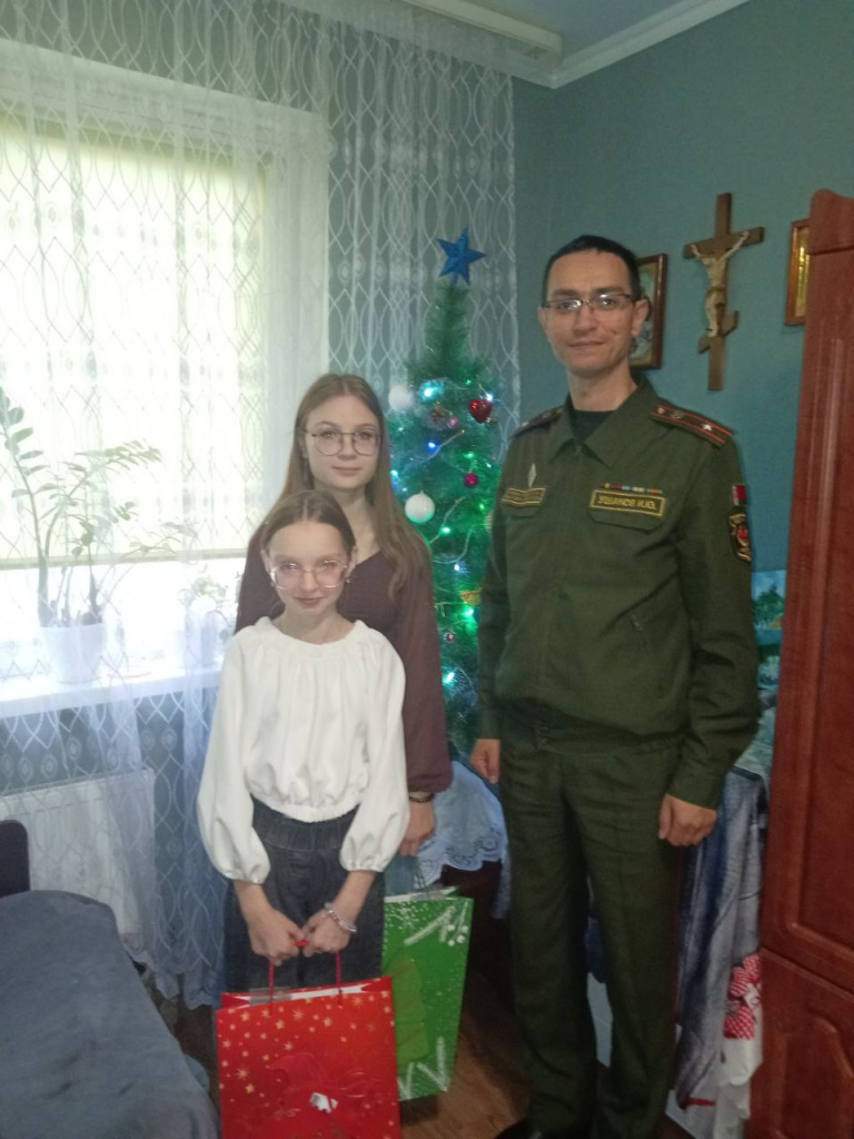 Более пяти лет в рамках акции коллектив обособленной группы посещает семью Виталия и Аллы Голодок, где воспитываются приемные дети Анастасия и Юлия. Этот год не стал исключением. Начальник обособленной группы майор Илья Ушанов поблагодарил взрослых за тепло и заботу, которыми они окружают детей, и вручил подарки девочкам.