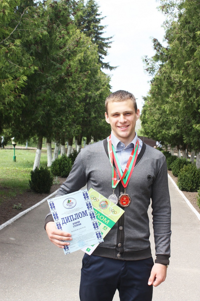 С республиканских соревнований, которые проходили в Пинске среди учащихся учреждений образования, расположенных в городской местности, по летнему многоборью «Здоровье» Государственного физкультурно-оздоровительного комплекса Республики Беларусь он вернулся с дипломом ІІ степени. Юноша опять-таки продемонстрировал свои способности в стрельбе из пневматической винтовки, плавании, прыжках в длину с места, беге, подтягивании на высокой перекладине.