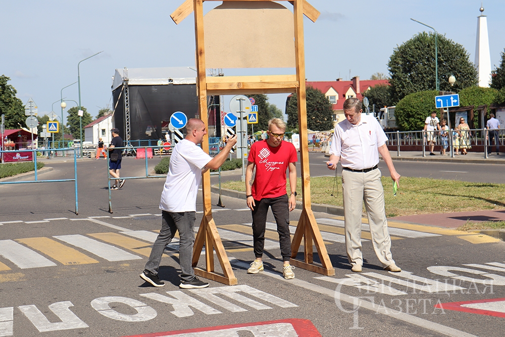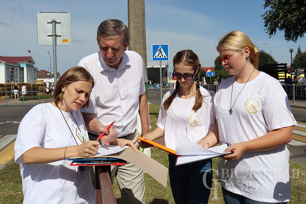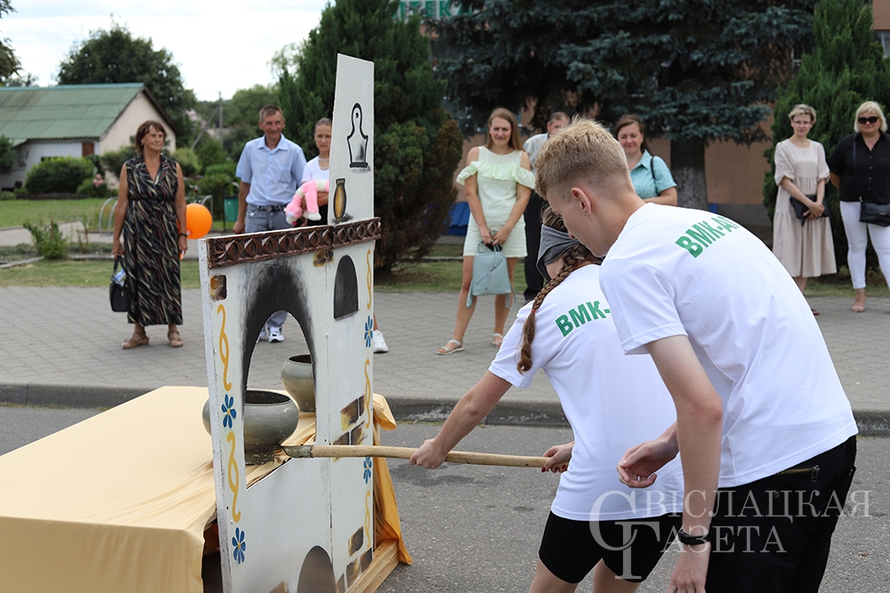«Куриные бега» – пожалуй, самый потешный конкурс эстафеты. Куры, к счастью, попались «сговорчивые». Нет-нет – да двигались вперед по узкому загончику и в руки ребятам давались. Перед финишем участников ждал конкурс «Каравай-каравай, кого хочешь – выбирай!». Здесь работали на пару: один левой рукой, второй правой помогали друг другу упаковать ту самую «Бацькаву булку» и перевязать ленточкой. На два узелка между прочим! Получилось! И это был лишь первый этап молодежного соревнования. Кто круче, жюри решит после второго этапа – конкурса «Бульче всех», который стартует в 16:00.