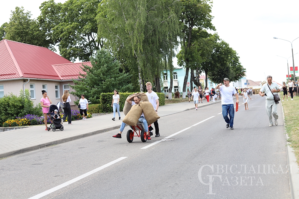 Позже поймать курицу могли попробовать все желающие. На эстафетную полосу вышли команды организаций нашего района: из Новодворской СШ, УП «ВМК-АГРО», Свислочской ЦРБ, УСП «Новый Двор-Агро», Свислочского района газоснабжения, КСУП «Ханчицы-Неман» и Гринковского ДС БШ. И снова было весело, ярко и незабываемо.