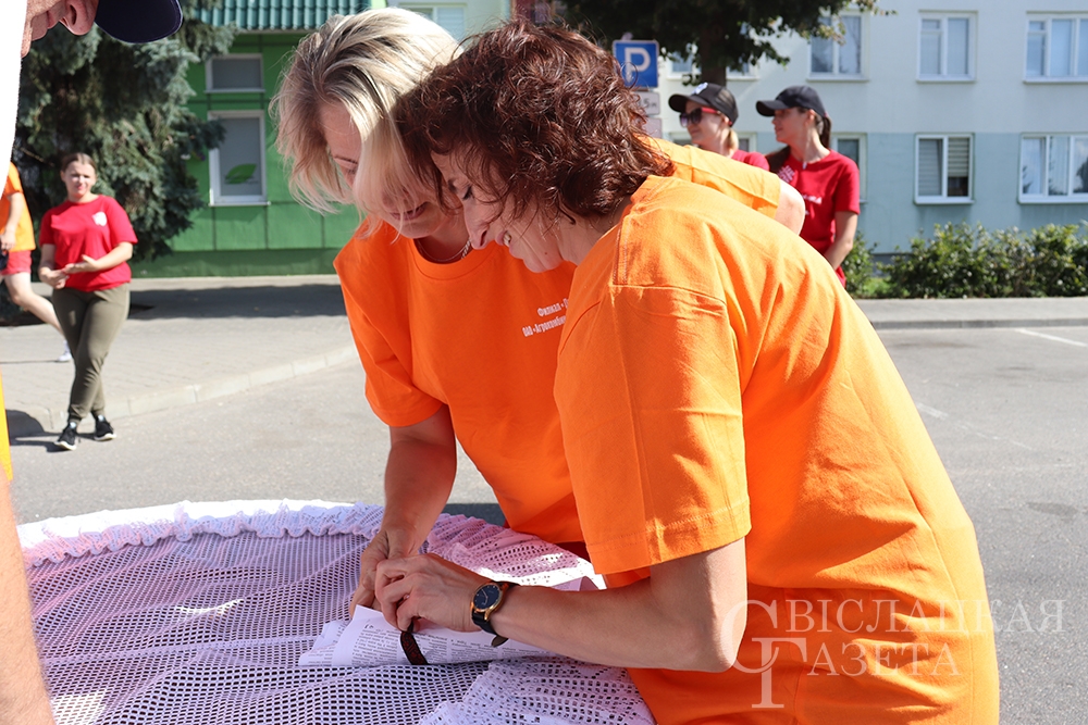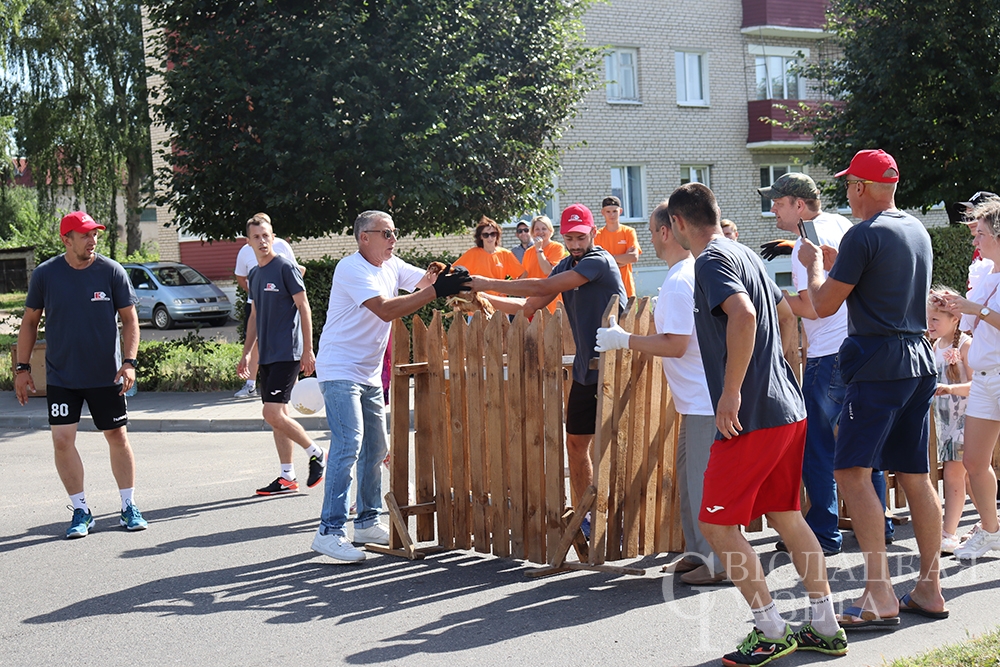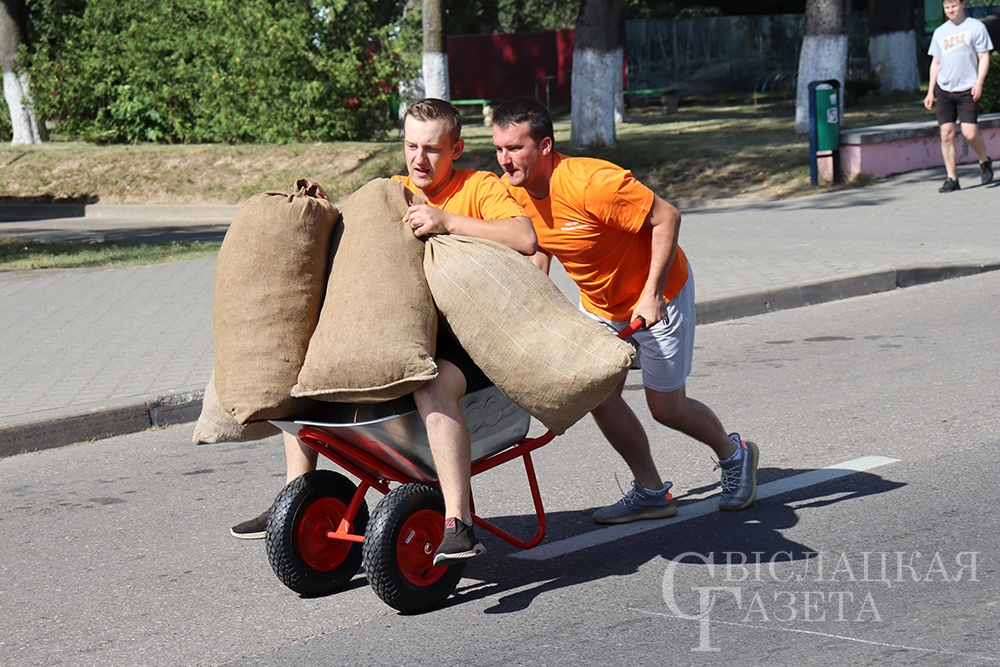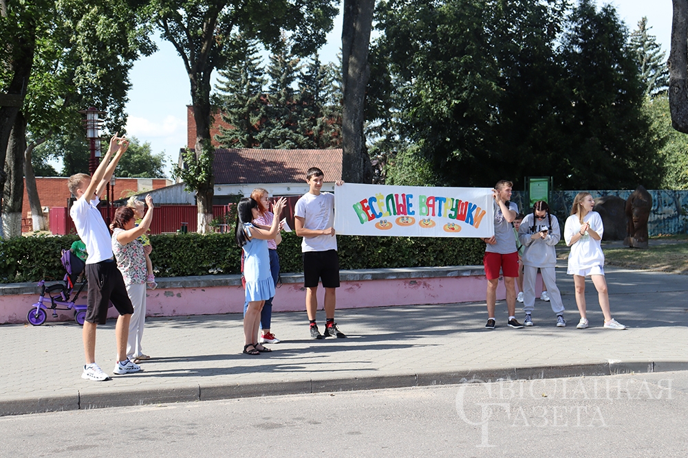 Пройти (или, скорее, пробежать, ведь работал секундомер!) пять веселых конкурсов вызвалось девять молодежных команд из разных уголков Гродненщины: «Слонимские львы», «Красносельскстройматериалы», «Гродножилстрой», «Волковыскгаз», «Веселые ребята» (Берестовицкий район), «Энергетические строители» (г. Гродно), «Пернатые» (Мостовский район), «Паруса» (г. Гродно). Свислочский район представляли «Веселые ватрушки».