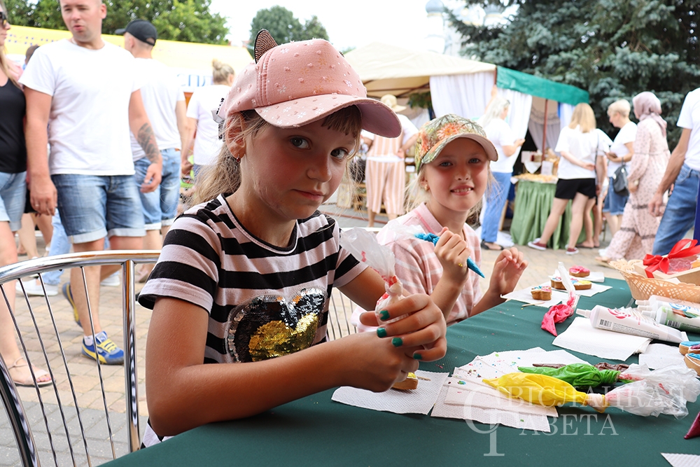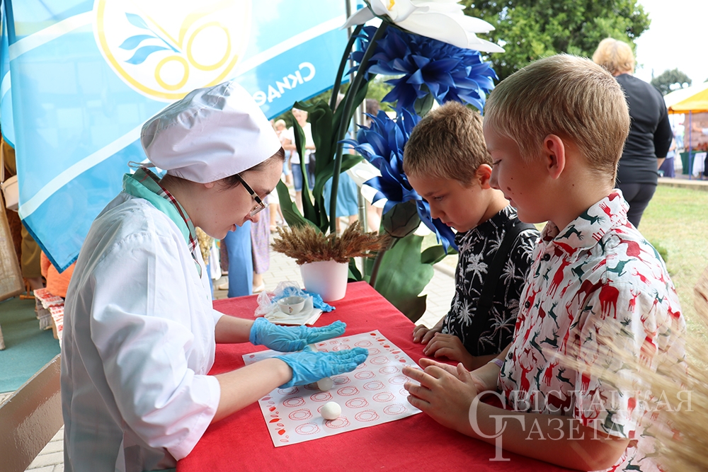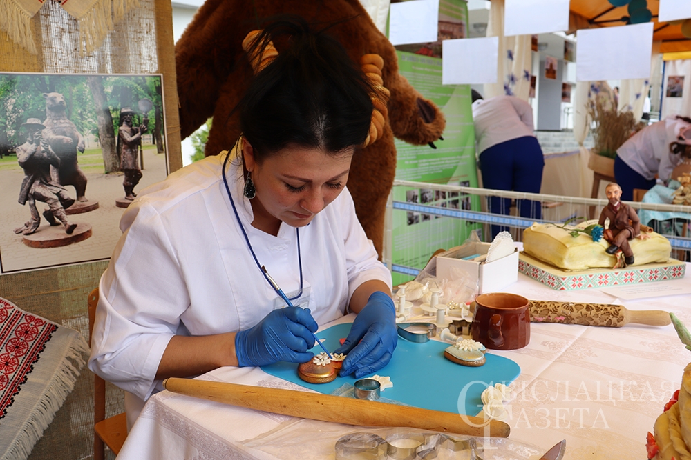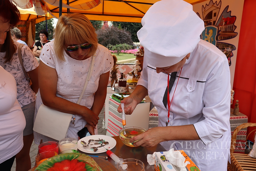 Здесь можно было декорировать картины элементами из соленого теста и фруктов, расписать пряники, составить букеты из хлебобулочных изделий, овощей. На память о празднике можно было изготовить украшение из мастики.