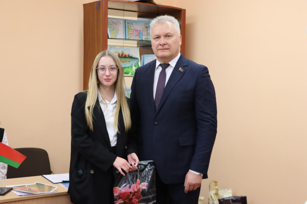 В рамках встречи Виктор Субботка отметил подарками тех ребят, которые вносят значительный вклад в развитие молодежного парламентаризма в районе. Это Екатерина Аксенова и Полина Рудомина.