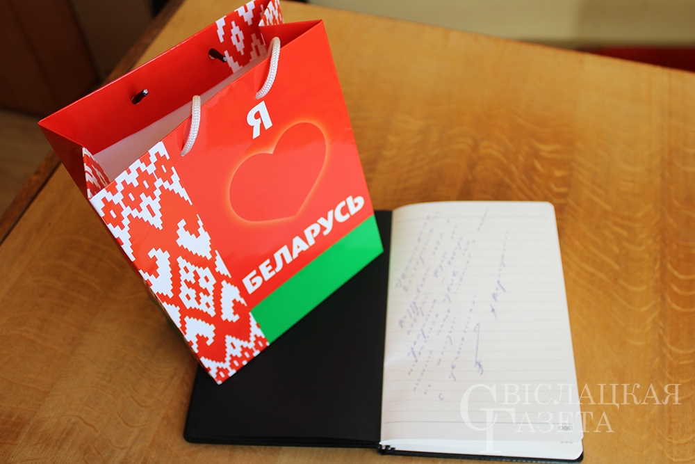 С заслуженной победой девушку поздравили в редакции газеты. С наилучшими пожеланиями памятный подарок Екатерине вручила заместитель главного редактора Марина Янюк. Она пожелала победительнице дальнейших успехов в учебе, творчестве и во всех начинаниях. Марина Александровна уверена, что подарок послужит стимулом для новых достижений и реализации намеченных планов. Особенен подарок тем, что теплые слова в адрес победительницы на нем оставил председатель Свислочского райисполкома Александр Версоцкий.
