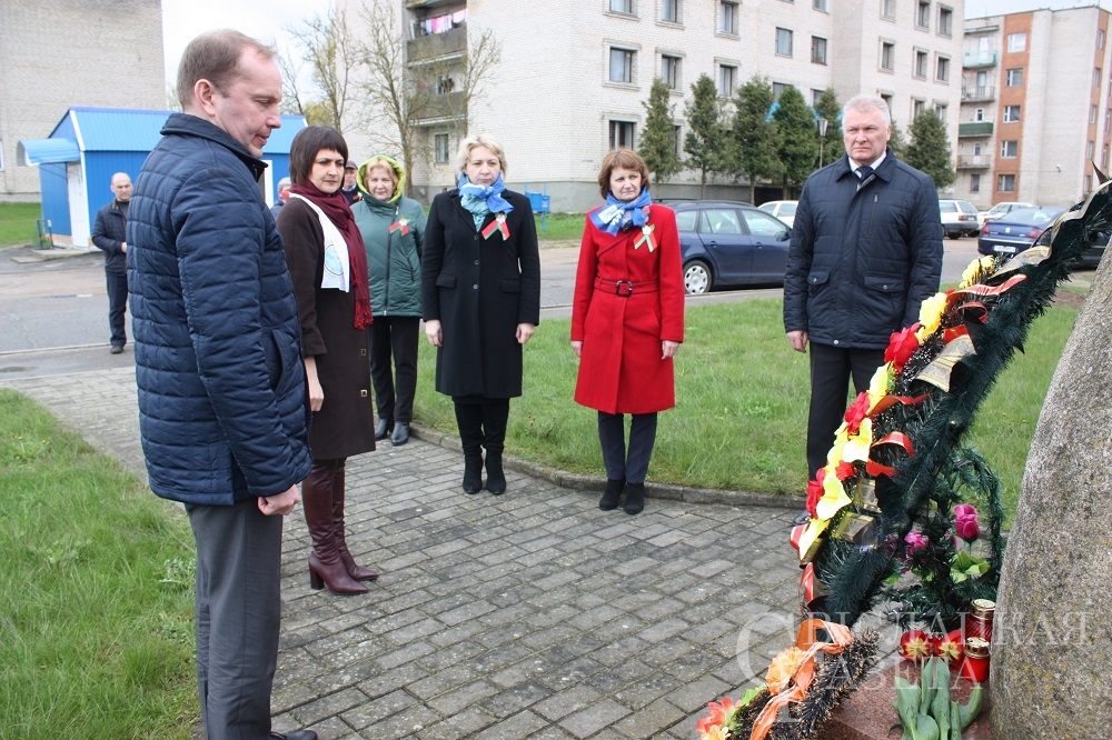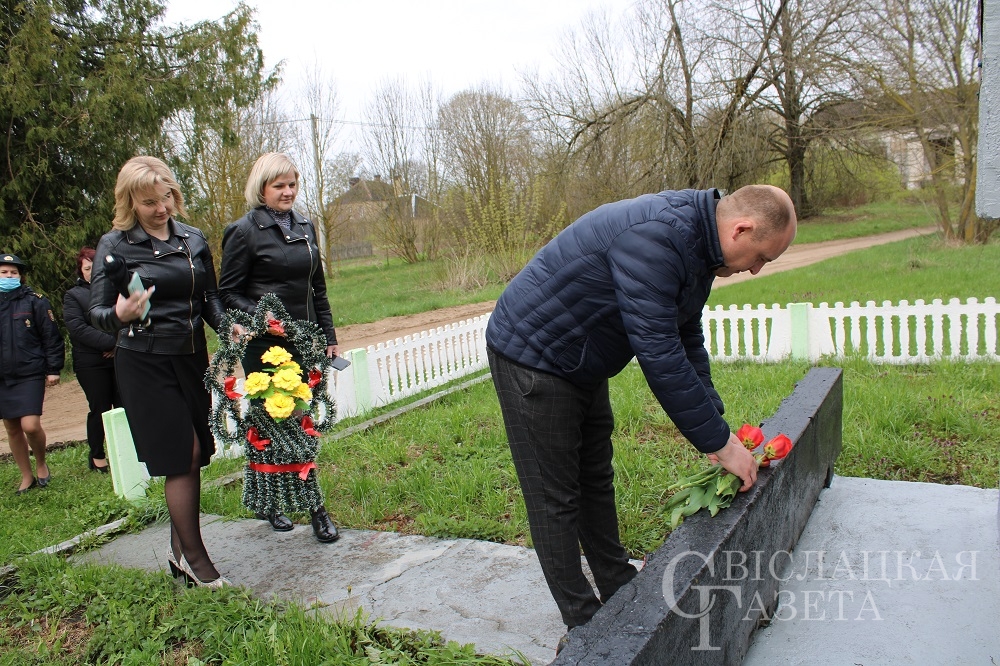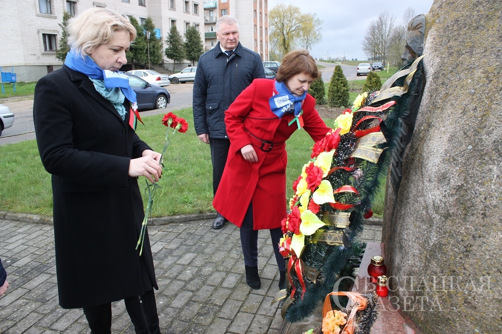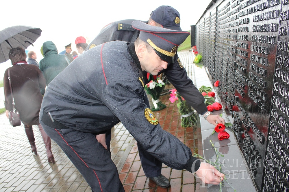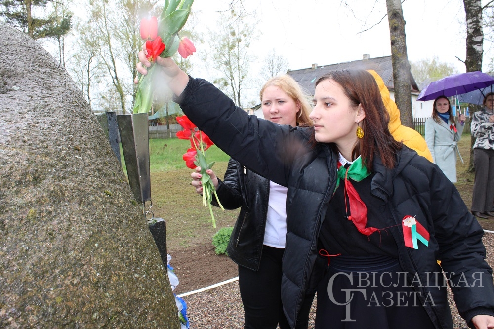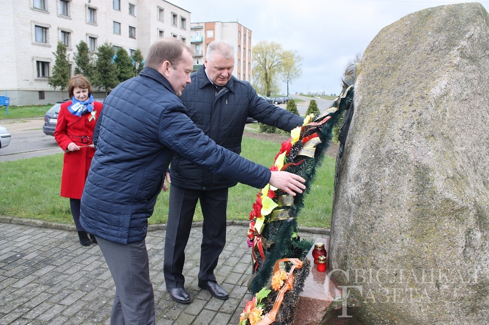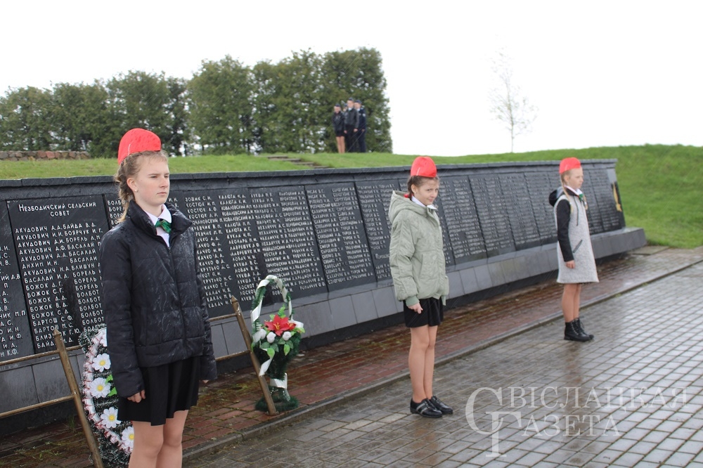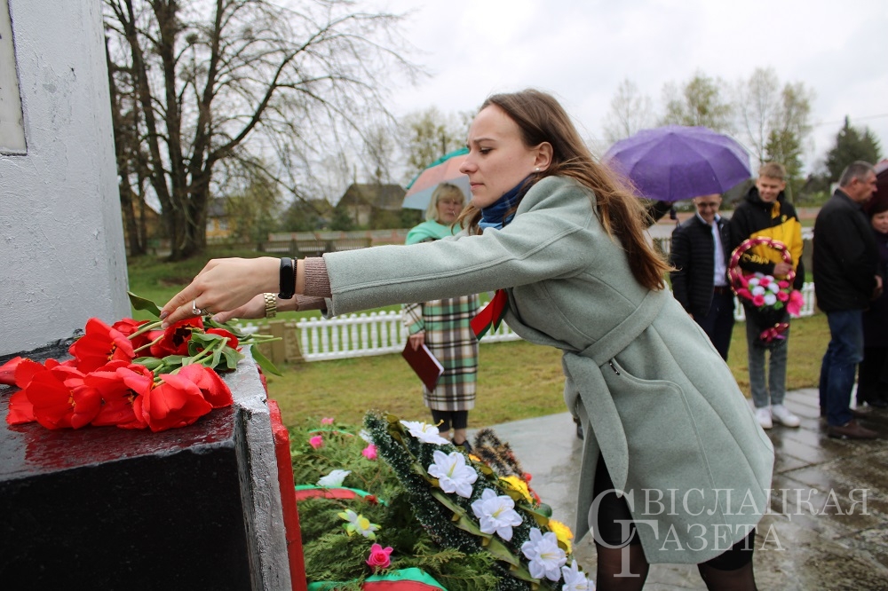Возложение цветов прошло у памятного знака Герою Советского Союза Н.П. Массонову в Свислочи. Память полковника, погибшего при освобождении Свислочи, почтили председатель районного Совета депутатов Виктор Субботка, заместитель председателя Свислочского райисполкома Юрий Куликов, заместитель начальника отдела идеологической работы, культуры и по делам молодежи райисполкома Татьяна Почебут, председатель районной ветеранской организации Елена Прокопик, представители общественных объединений и организаций района.После 15:00 проехавшие по своим маршрутам участники автопробега объединились в одну колонну и направились к мемориальному комплексу «Асiлак», где свислочане собрались на торжественный митинг.