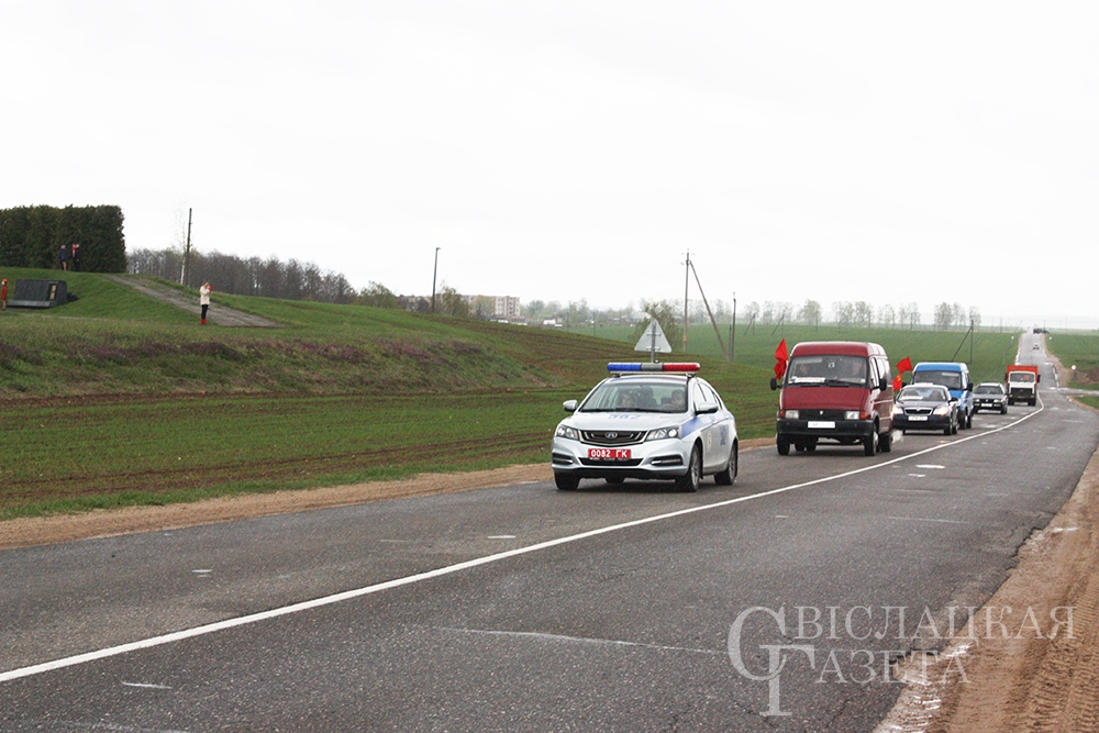 В автопробеге приняли участие заместитель военного комиссара по территориальной обороне майор Руслан Смолдарев, участковый инспектор Свислочского РОВД Екатерина Радивоник, секретарь первичной организации ОО «Белорусский республиканский союз молодежи» гимназии № 1 им. К. Калиновского Вероника Столяревская и гимназисты Владислав Астапчик и Даниил Гуштын. К ним по ходу движения присоединялись председатели сельсоветов, учителя и учащиеся сельских школ, представители сельскохозяйственных организаций района, а также местные жители.