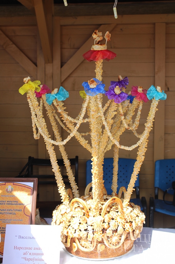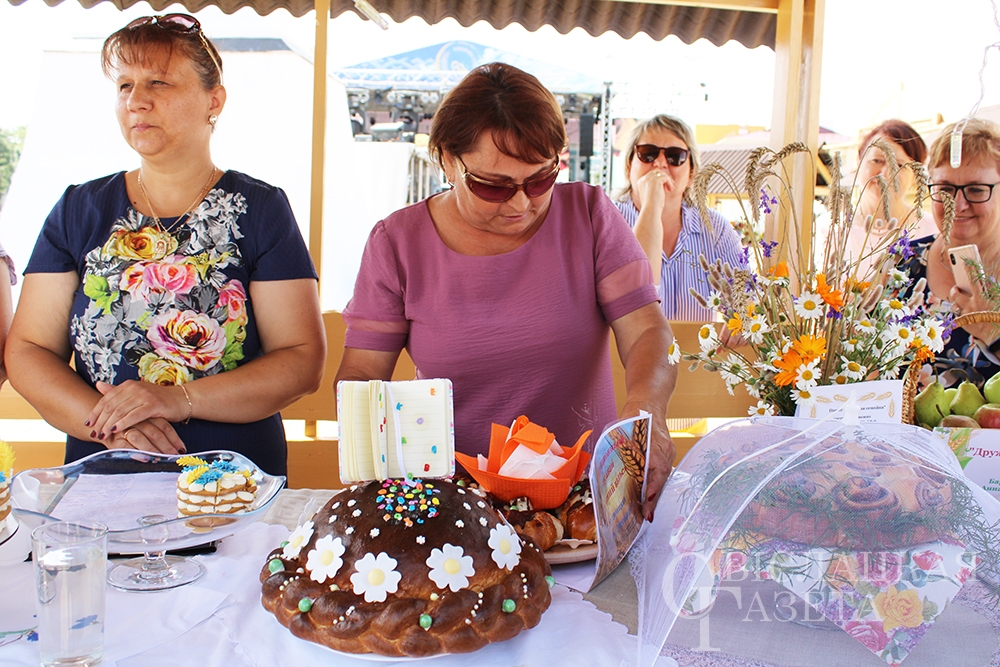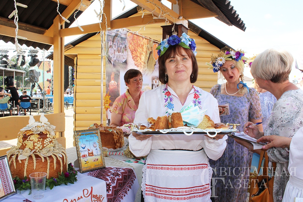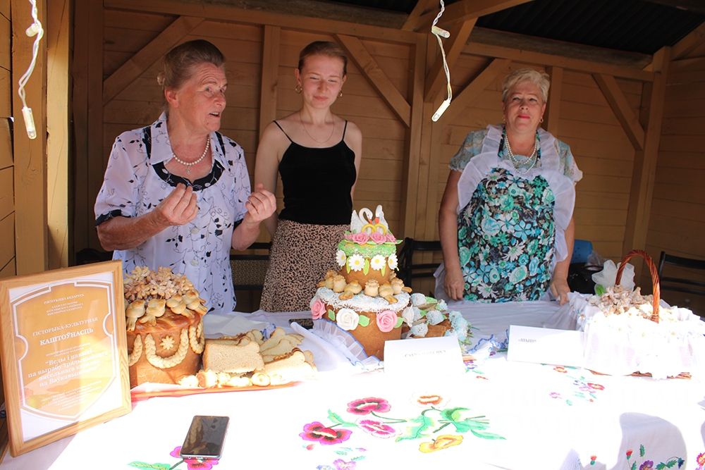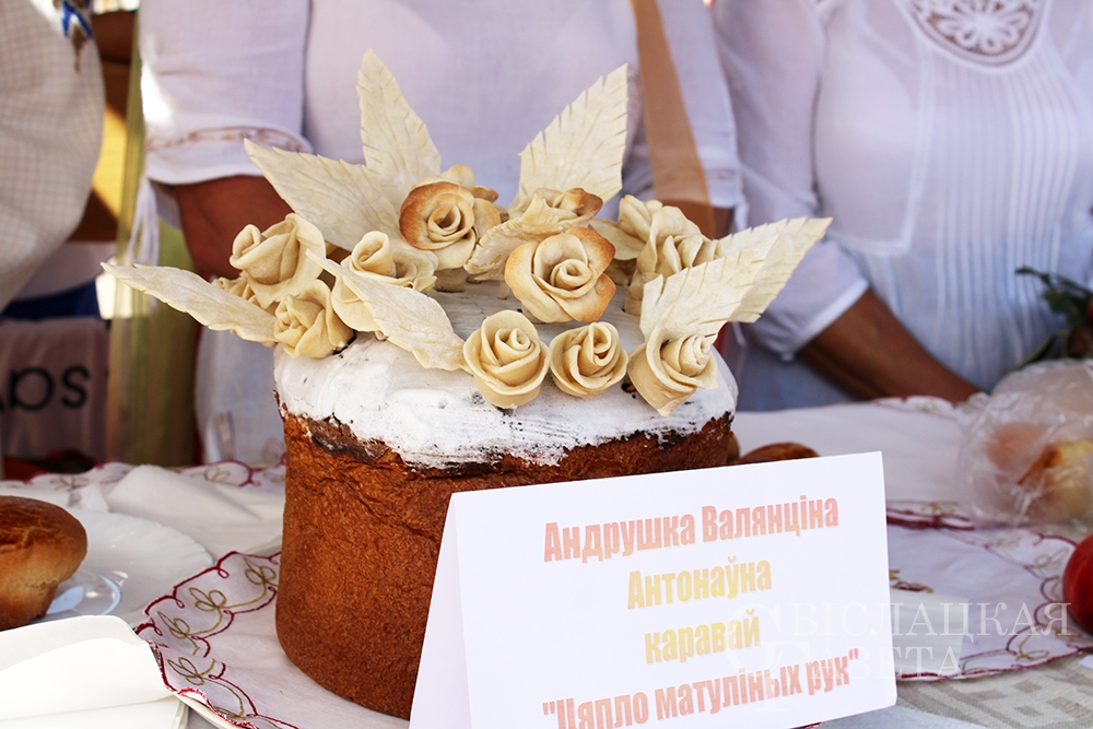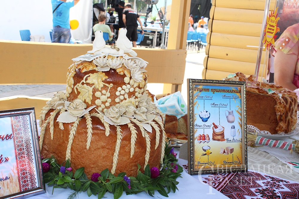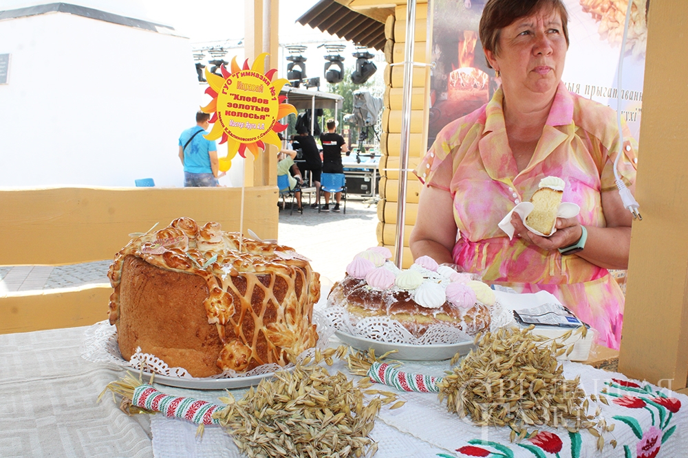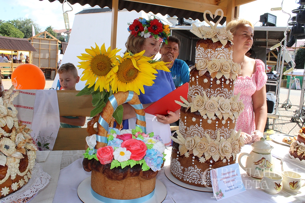 Глаза разбегались от разнообразия домашней выпечки хлебобулочных и кондитерских изделий, которую привезли пекари-любители на конкурс. Каждый постарался на славу. Тут были и пасхальные куличи, и свадебные караваи, и обрядовая выпечка… 1-, 2-, 3-, 4-ярусные караваи, украшенные цветами, птицами, шишками красовались на солнце, привлекая внимание прохожих.