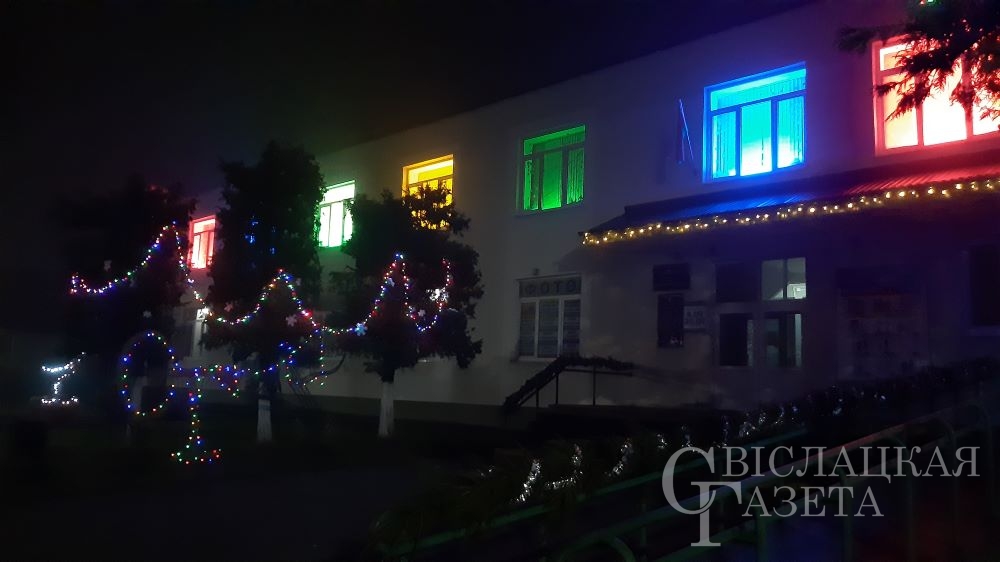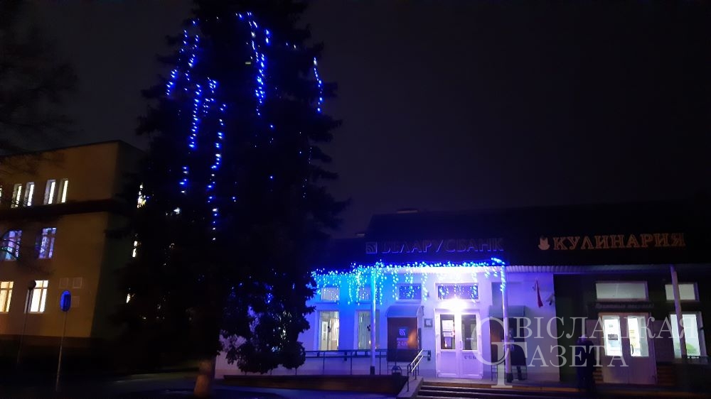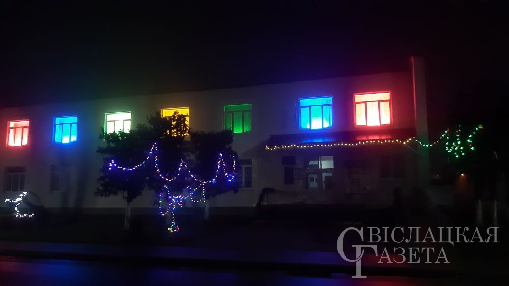 Разноцветными мерцающими гирляндами украшены не только окна и фасады зданий, но и растущие рядом деревья, кустарники и даже фонарные столбы.