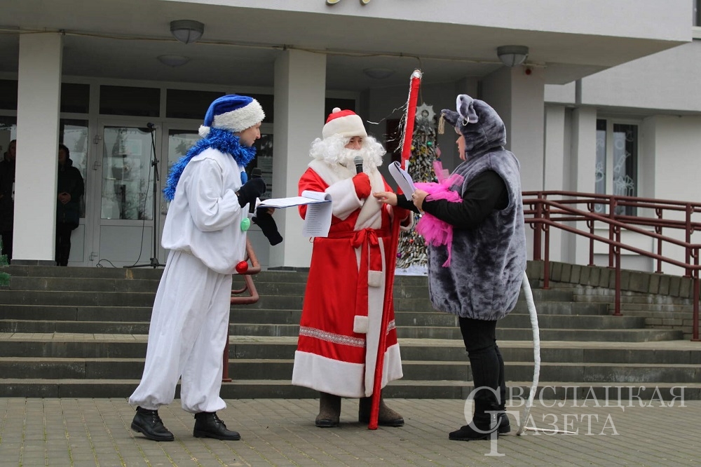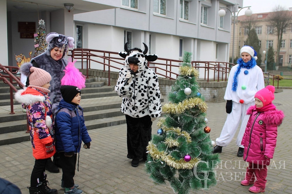 Вместе со сказочными персонажами – Дедом Морозом, Снегурочкой, Крысой, Снеговиком и Быком – детвора отправилась в маленькое новогоднее приключение. Всех объединило одно большое желание – чтобы засветилась огнями наряженная елочка.