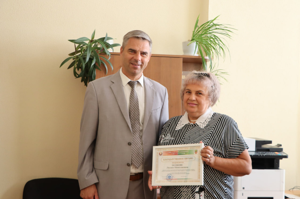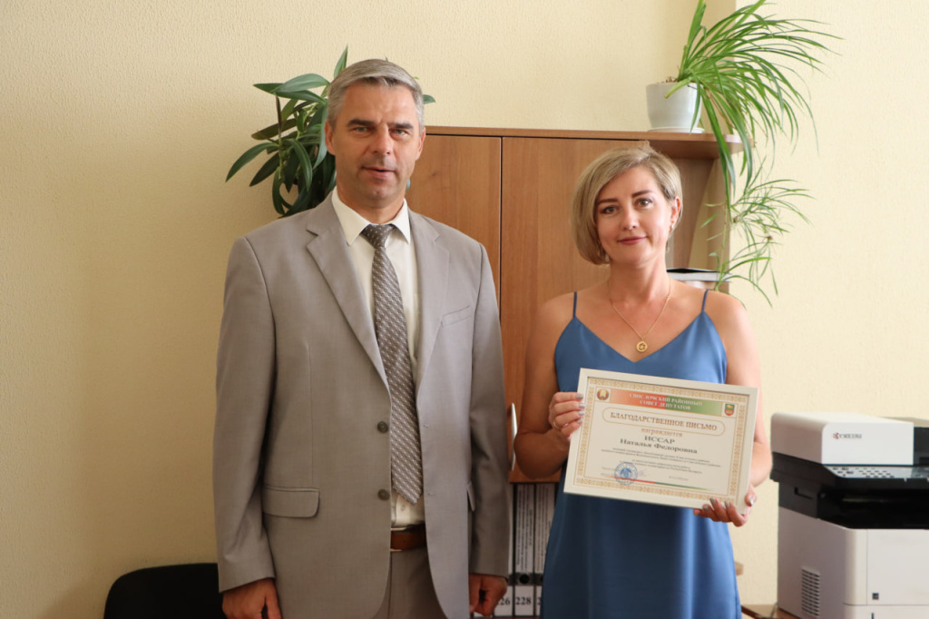 Благодарственными письмами Свислочского районного Совета депутатов в честь юбилея отмечена многолетняя добросовестная работа в системе военных комиссариатов ведущего специалиста Натальи Иссар и уборщика служебных помещений Лилии Позняк.