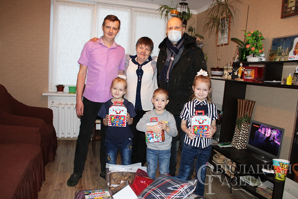 Встреча директора ООО «ЭйчЭс Белакон» Витаутаса Сланкаускаса и представителей отдела образования Свислочского райисполкома с ребятами из многодетных семей и их родителями состоялась в рамках акции «Наши дети». Гости подготовили для них огромное количество подарков. Это и красивые детские вещи, настольные и развивающие игры, книги, сладкие угощения, комплекты постельного белья, покрывала, подушки и многое другое. Все это они вручили трем счастливым семьям: Виктора Зощика, Павла и Натальи Москалевых, Светланы и Станислава Савко.