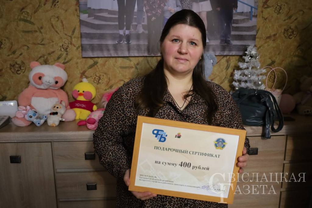 Гродненская областная организация Белорусского профсоюза работников транспорта и коммуникации, председателем которой является Анатолий Пукач, и объединенная профсоюзная организация КУП «Гроднооблдорстрой», возглавляемая Марией Кирилло, оказали спонсорскую помощь Свислочскому районному социально-педагогическому центру на 400 рублей. Сертификат на эту сумму решено было передать многодетной приемной семье Надежды Ширяевой.