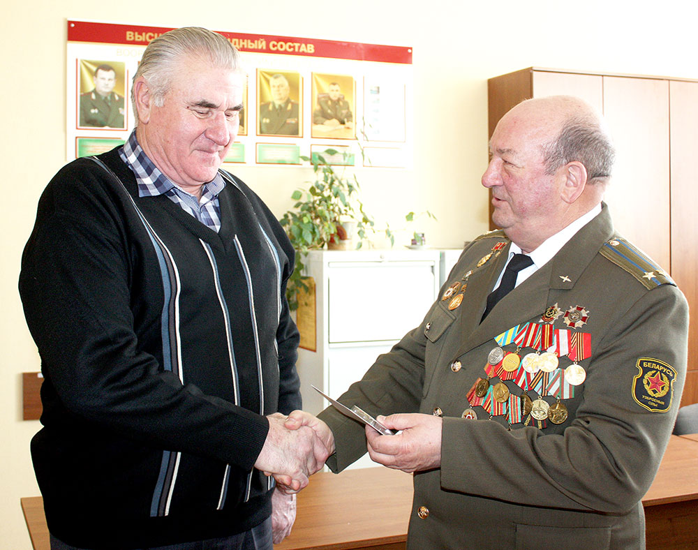 В заключительной части Валерьян Жук вручил юбилейные медали «100 год Узброеным Сілам Рэспублікі Беларусь» подполковникам в отставке Александру Череде, Евгению Штопу, Юзефу Якубовскому, майорам в отставке Владимиру Копачу, Владимиру Кудрякову, прапорщикам в отставке Ивану Василенко, Анатолию Лешенюку, Николаю Халимону.