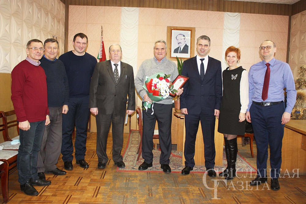 Слова благодарности за многолетний плодотворный труд в сельскохозяйственной отрасли и в связи с 60-летием звучали в адрес юбиляра от почетных гостей: председателя райисполкома Александра Версоцкого, первого заместителя председателя – начальника управления сельского хозяйства и продовольствия райисполкома Андрея Грицкевича, заместителя директора Гродненского областного агропромышленного союза Ивана Олизаровича, председателя райкома отраслевого профсоюза Анатолия Климчука, представителей Белагромбанка. В этот день со значимым событием в жизни Валерия Станиславовича поздравили председатель первичной профсоюзной организации сельхозпредприятия Ирина Канюк и коллеги.