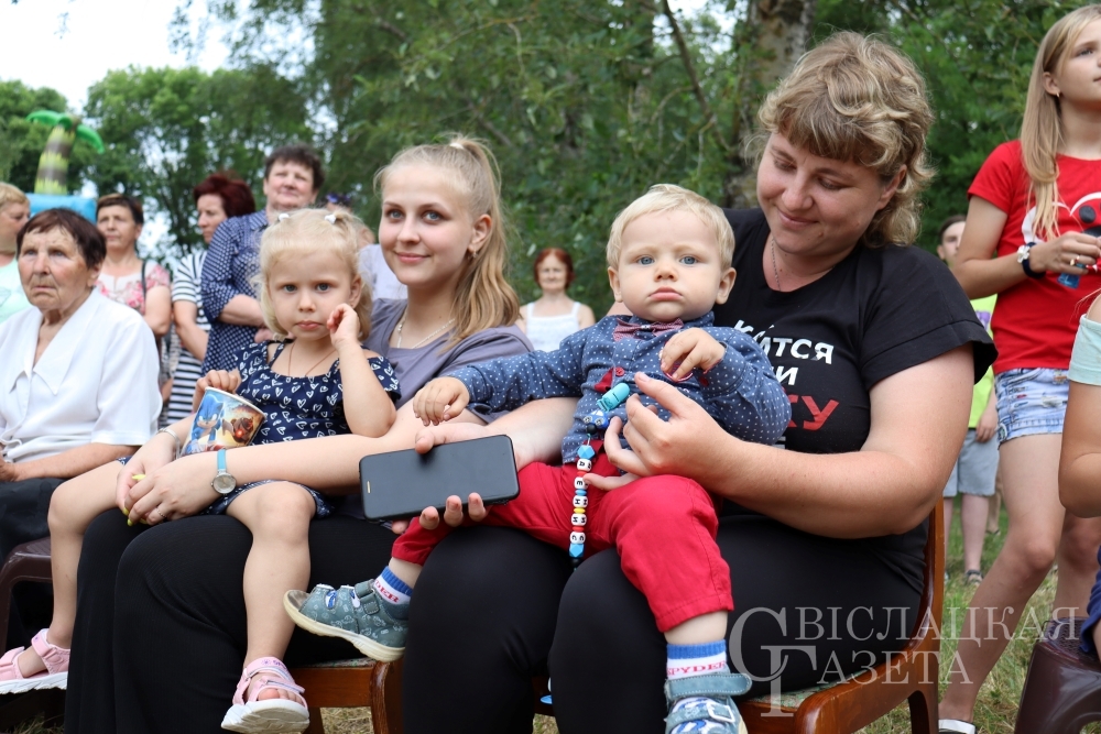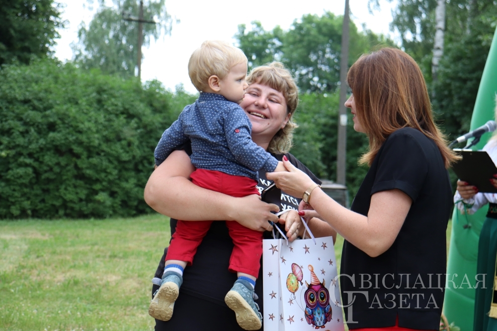 Доказательством того, что деревня будет еще жить, служит то, что тут живут дети. В этот вечер вручали подарок и самому маленькому жителю – Дениске Богдановичу и его маме Ирине. 15 июня мальчику исполнился 1 годик.