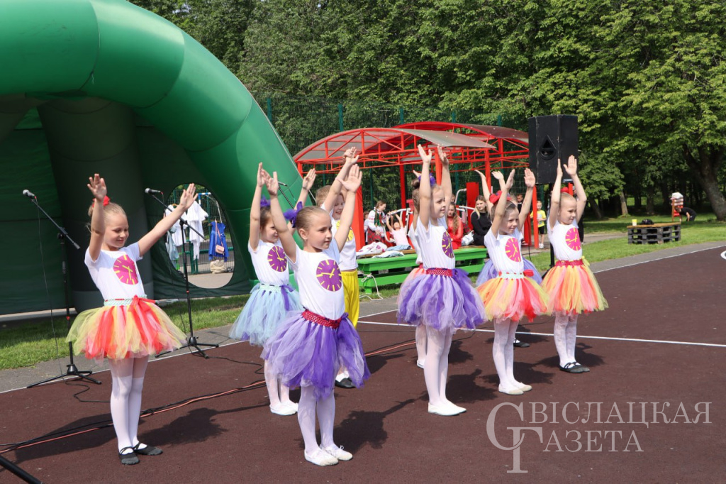 Программа первого летнего дня, пригласившая в городской парк юных жителей Свислоччины, действительно была яркой и насыщенной. Сначала многочисленную публику собрал театрализованный концерт «Веселая клоунада», подготовленный артистами районного центра культуры и народного творчества. Вместе с клоунами детвора участвовала в конкурсах, пела и танцевала. Активно участвовали малыши в игровых программах «Мы встречаем лето» и «Веселые пчелки», подготовленных Великосельским и Вердомичским филиалами-клубами.