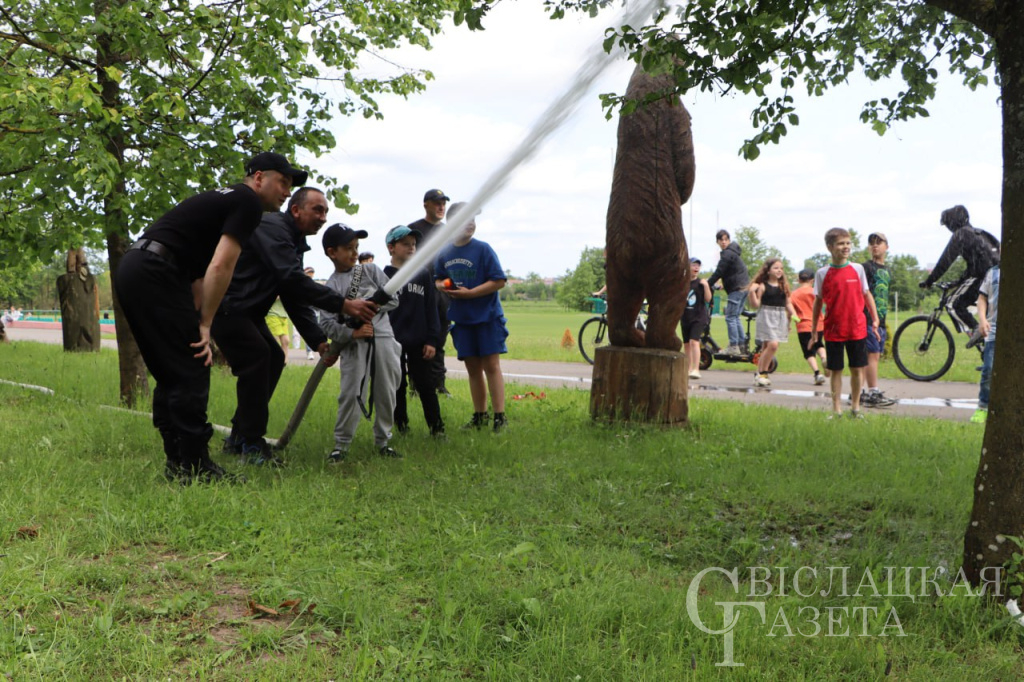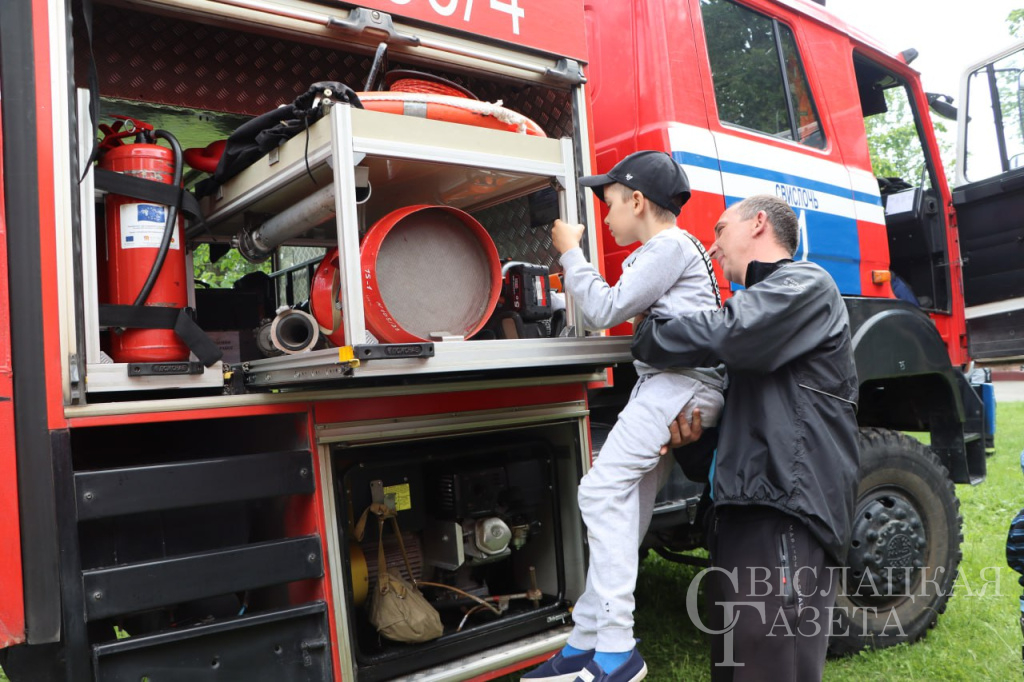 Свислочский отдел Департамента охраны МВД продемонстрировал показательное выступление со служебной собакой. А районный отдел МЧС познакомил со спасательным оборудованием. Методы спасения на водах продемонстрировал ОСВОД.