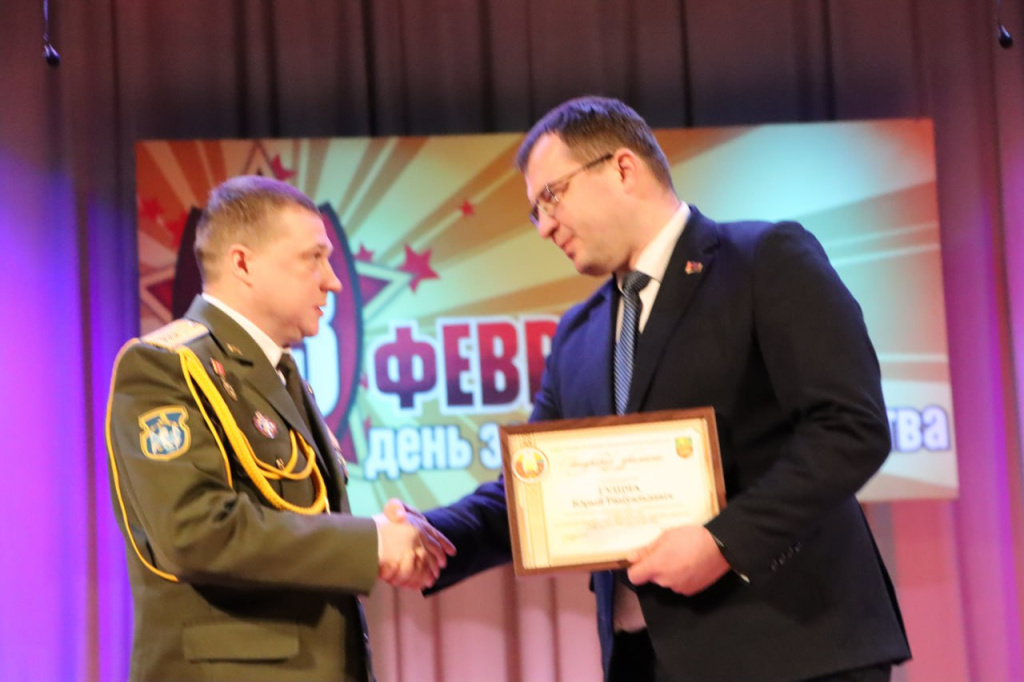 Андрей Грицкевич тепло поздравил представителей силовых структур и всех мужчин, присутствующих в зале, с наступающим праздником. Он пожелал мирного неба, удачи во всех делах и четкого видения завтрашнего дня.