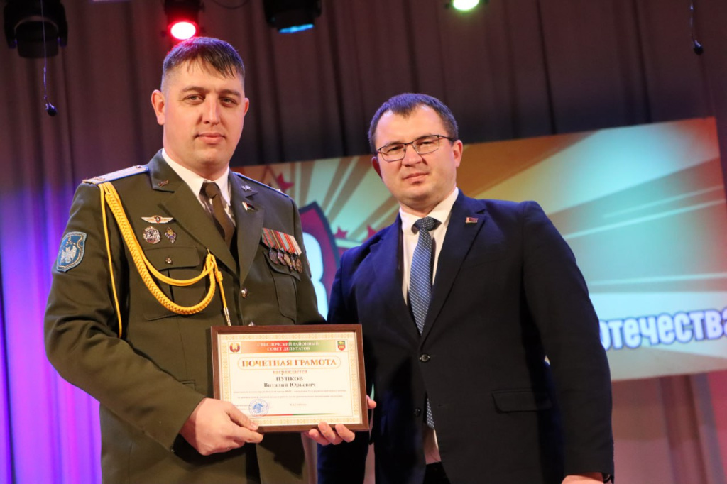 Почетной грамоты Свислочского районного Совета депутатов за значительный вклад в работу по патриотическому воспитанию молодежи удостоены член районной организации общественного объединения «Белорусский союз офицеров» Сергей Вдовин и заместитель командира в/ч 48685 Виталий Пупков, а благодарственного письма Свислочкого районного Совета депутатов – Павел Борисевич.