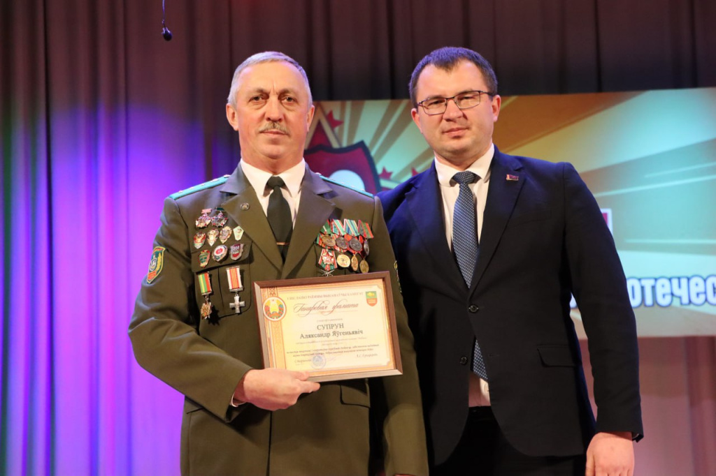 Почетными грамотами райисполкома за высокие показатели в оперативно-служебной деятельности, профессиональную инициативу и добросовестное выполнение воинского долга были награждены начальник отделения связи подвижной группы 1-го радиотехнического центра в/ч 48685 Юрий Гуща и водитель автомобиля 6-го отделения пограничной заставы «Рыболы» в/ч 2141 Александр Супрун.