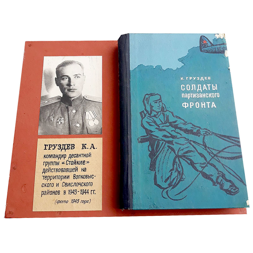 «Солдаты партизанского фронта» – унікальнае выданне. Напісана кніга самім Канстанцінам Груздзевым, камандзірам разведвальна-дыверсійнай групы «Стойкія», якая дзейнічала на тэрыторыі Свіслацкага і Ваўкавыскага раёнаў у 1943–1944 гадах. Кніга пабачыла свет у 1969 годзе. Дарэчы, асобную главу – «Хозяин пущи» – аўтар прысвяціў вядомаму дабравольскаму народнаму мсціўцу Мікалаю Русаку. Сёння экзэмпляр выдання як каштоўная рэліквія захоўваецца і ў патомкаў Русака (дакладней, у Гродне, дзе жыве ўнучка легендарнага партызана – Алена Русць).