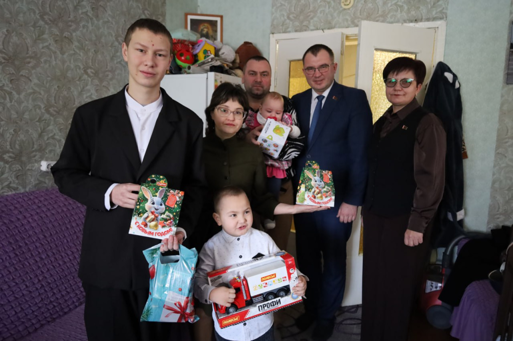 В рамках акции «Наши дети» поздравить с новогодними и рождественскими праздниками семью Иосифа и Татьяны Шестак из агрогородка Корнадь приехали председатель Свислочского райисполкома Андрей Грицкевич, председатель Новодворского сельского Совета Ирина Якута и главный специалист отдела идеологической работы и по делам молодежи Екатерина Данилович. Встреча получилась очень теплой и доброжелательной.