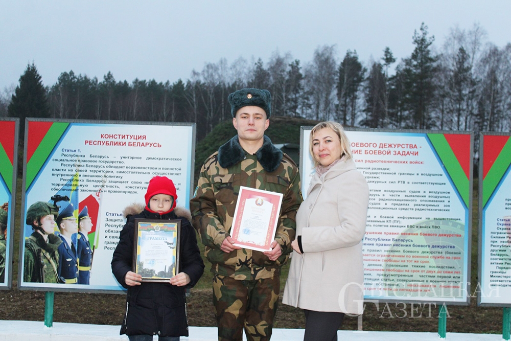 За усердие и старание, проявленные при несении боевого дежурства, достигнутые успехи в служебной деятельности, разумную инициативу и в ознаменование 20-й годовщины со дня образования единого вида Вооруженных Сил – Военно-воздушных сил и войск противовоздушной обороны Республики Беларусь – рядовой Станислав Журавлев награжден грамотой. Под аплодисменты боевых товарищей заслуженную награду уволенному в запас военнослужащему вручил майор Виталий Пупков.