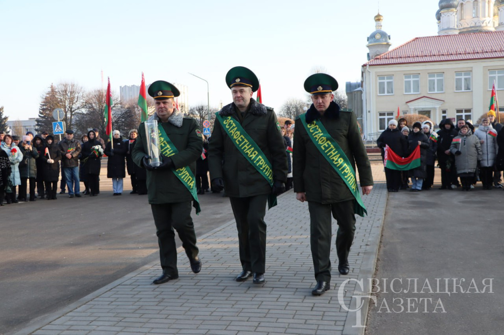 «Эстафета Победы» продолжает свой путь. 10 февраля брестские пограничники торжественно передали эстафету Гродненской пограничной группе. На Гродненщине ее первым принял Свислочский район.