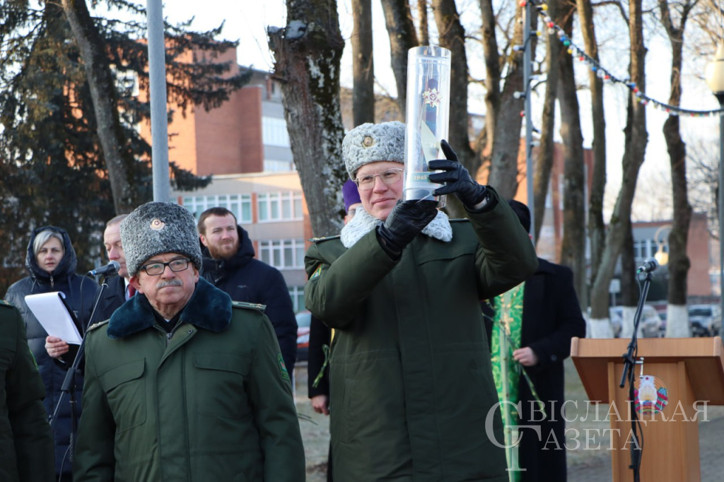 – «Эстафета Победы» – знаковое мероприятие, символизирующее гордость и память о тех страшных событиях 80-летней давности, о том великом подвиге, который совершили воины-герои Великой Отечественной войны. Наши деды и прадеды несли мир в наш дом, нашу страну, они подарили светлое детство и спокойную жизнь нам и нашим детям. К сожалению, в районе не осталось в живых ветеранов, участников военных действий. Уходят настоящие свидетели, которые знали правду и могли о ней говорить. Задача нынешнего поколения – не просто сохранить историческую память, а изучать, знать, понимать события и факты военной истории. Это нужно для того, чтобы не дать возможности исказить правду и противостоять сегодняшней пропаганде неонацизма. Свислоччина – район пограничный. Здесь особое отношение к воинам-пограничникам, которые первые встретили врага в 1941 году, гибли в борьбе с бандитскими формированиями, восстанавливали государственную границу после освобождения Беларуси в 1944-м. И сегодня наши пограничники успешно несут службу в непростых условиях. Хочу пожелать стражам границы успехов в охране родных рубежей, поблагодарить за патриотизм, преданность делу и профессионализм.