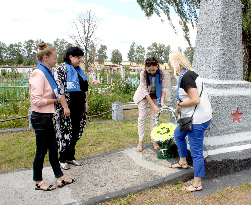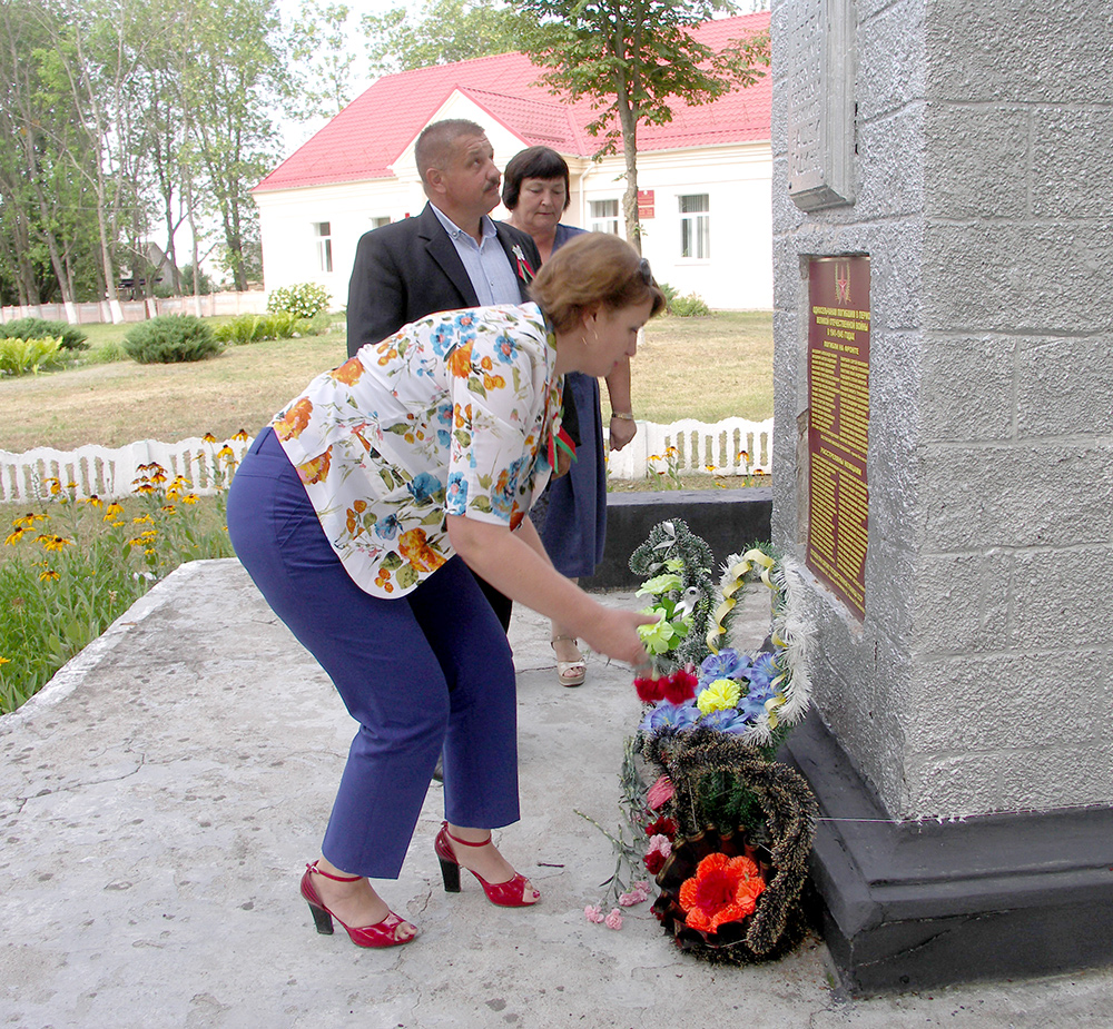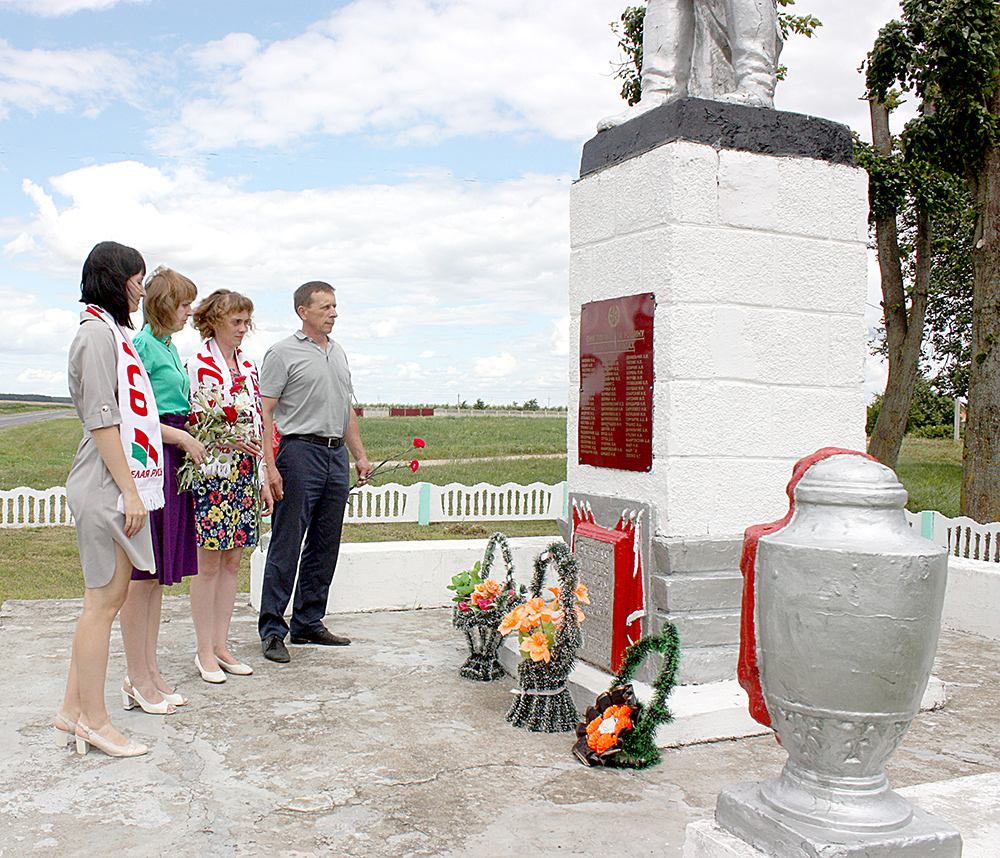 Председатель районного объединения профсоюзов Светлана Кривопуст, председатель районной организации Белорусского профсоюза работников образования и науки Виктор Скаскевич совместно с председателем Незбодичского сельского Совета Марией Качко и многодетной семьей Нехайчук из Незбодичей возложили цветы к братской могиле, которая расположена в агрогородке.