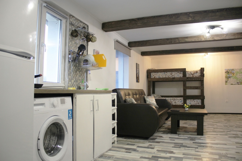Домик переделан под однокомнатную квартиру. Имеются кухня, санузел, спальное помещение. Все в европейском стиле. Благоустроен и двор. Хозяева планируют сделать еще беседку. Как правило, такое сооружение – самый необходимый объект для отдыха.