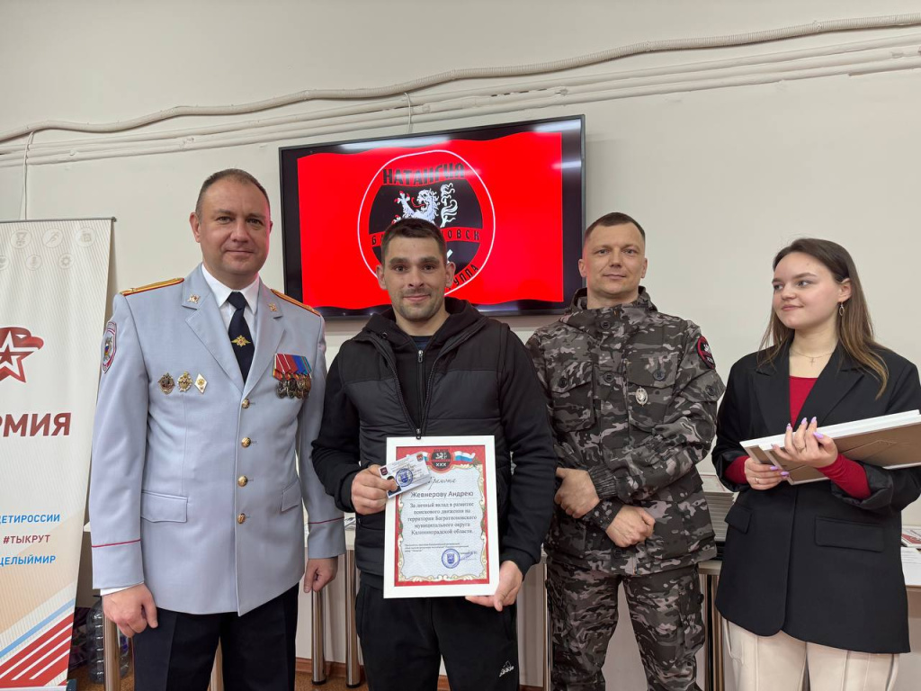 С юнармейцами встретился глава Багратионовского муниципального округа Калининградской области Максим Макарчик. За вклад в развитие поискового движения на территории Багратионовского муниципального округа была отмечена работа поисковой группы «Натангия». Состоялся торжественный прием в ряды юнармейцев.