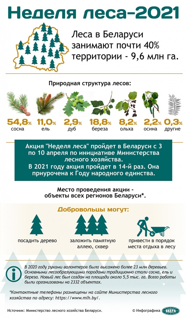 В нынешнем году акция состоится уже в 14-й раз. "За это время она полюбилась многим белорусам, которые стали ее постоянными участниками. Активное участие в "Неделе леса" принимают не только семьи, но и трудовые коллективы, общественные организации, представители органов государственного управления", - рассказали в пресс-службе.