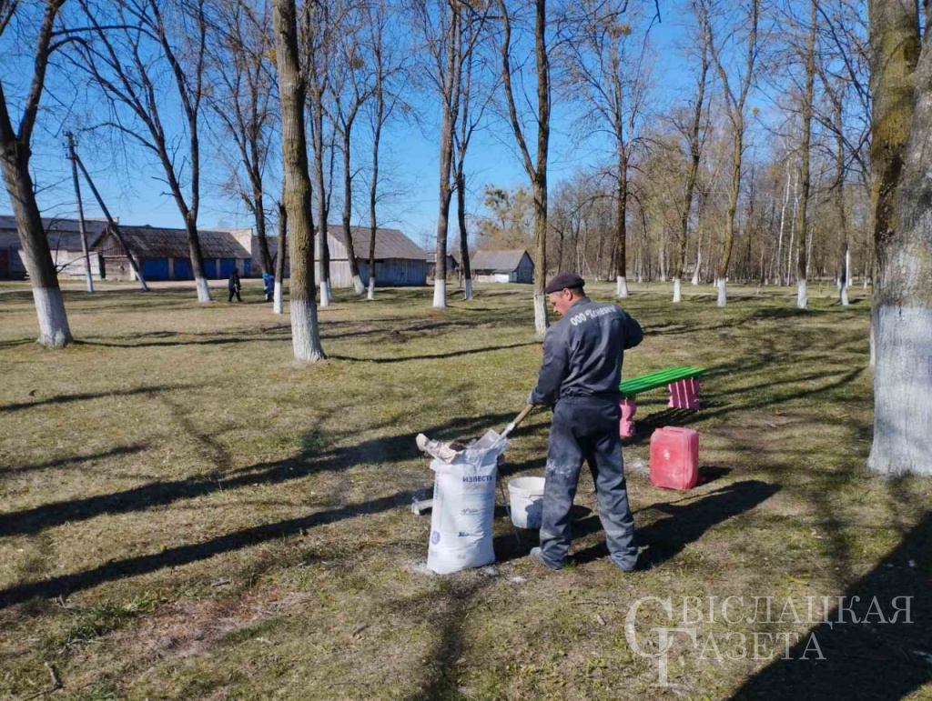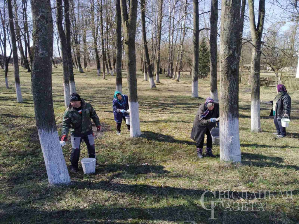 Вместе с председателем Хоневичского сельсовета Брониславом Дичковским, управделами Марией Савко на уборку вышли старосты агрогородка Нина Матюшенко, Валентина Шейко, Оксана Сушко и местный житель Руслан Донилик. Общими усилиями побелили порядка 150 деревьев. Работали без перерыва и отдыха. Хотелось быстро управиться, так как ждали еще и другие работы – посадка деревьев, покраска и установка новых скамеек.