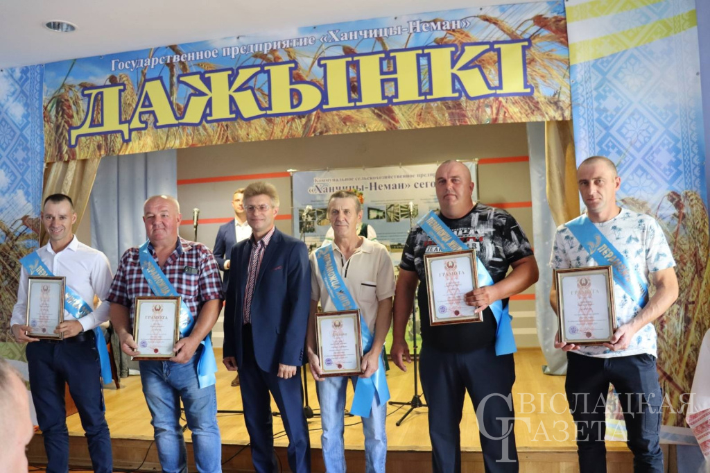 Награду в этот день получили главный агроном Александр Вакульчик и главный инженер Виктор Жук. В народе говорят: «За хороший урожай агронома уважай». И действительно, от агронома зависит многое. Если уродилась нива богатая и щедрая, значит, выполнил агроном свою работу добросовестно. Если жатва успешно завершена, немалая в том заслуга также инженерной службы, ведь она отвечает за то, чтобы техника всегда была на ходу. Слова благодарности звучали в этот день и в адрес кладовщиков Людмилы Жук и Оксаны Зомер, на плечах которых ответственность за сохранение урожая.